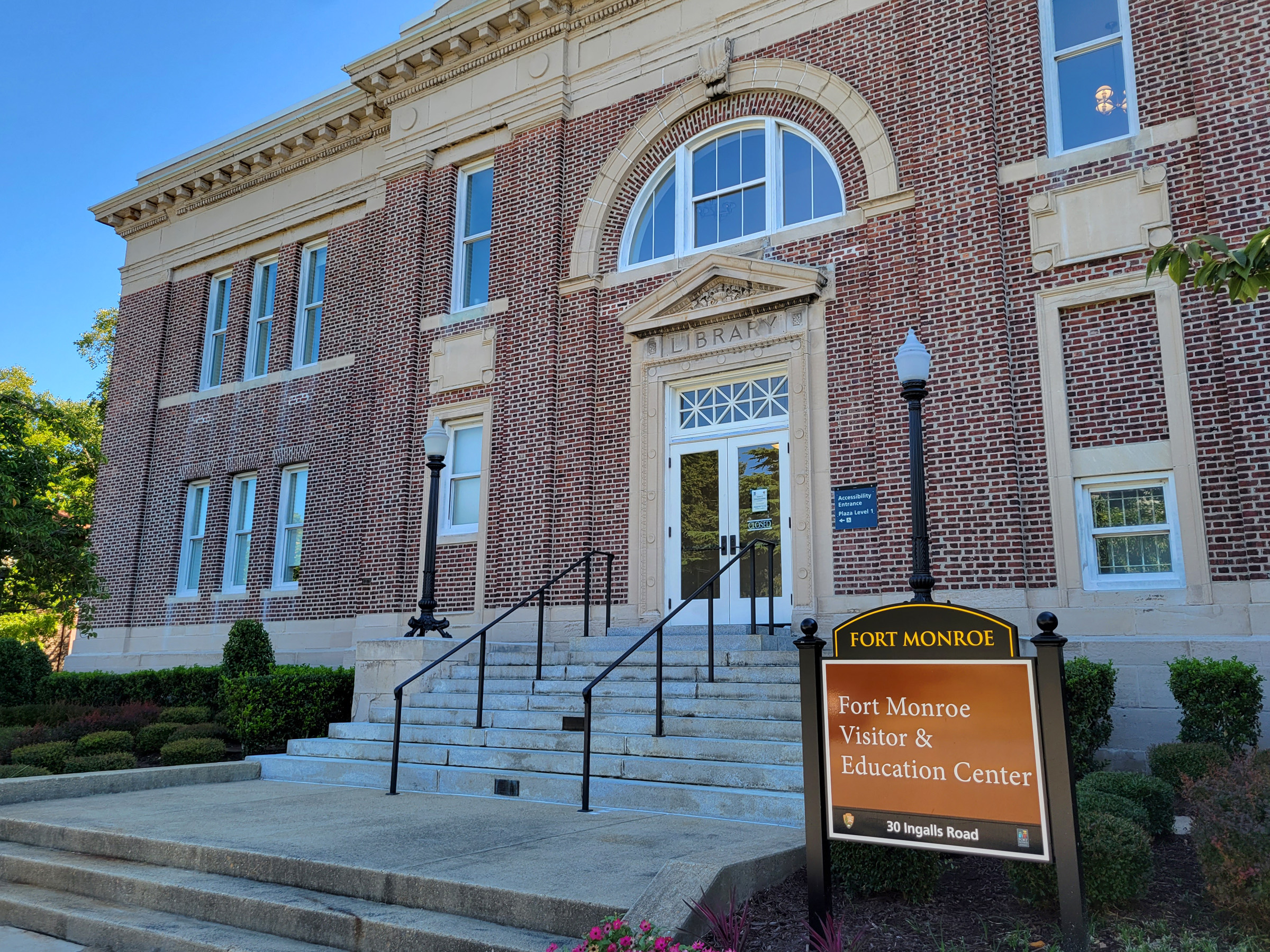 숙박했던 버지니아비치(Virginia Beach)에서 30여분을 달려서 햄프턴(Hampton) 마을의 도서관에 도착을 했는데, 여기가 포트먼로 내셔널모뉴먼트(Fort Monroe National Monument)의 방문자 및 교육 센터로 사용되는 곳이지만... 우리가 방문한 월요일에는 문을 열지 않았다. 흑흑~