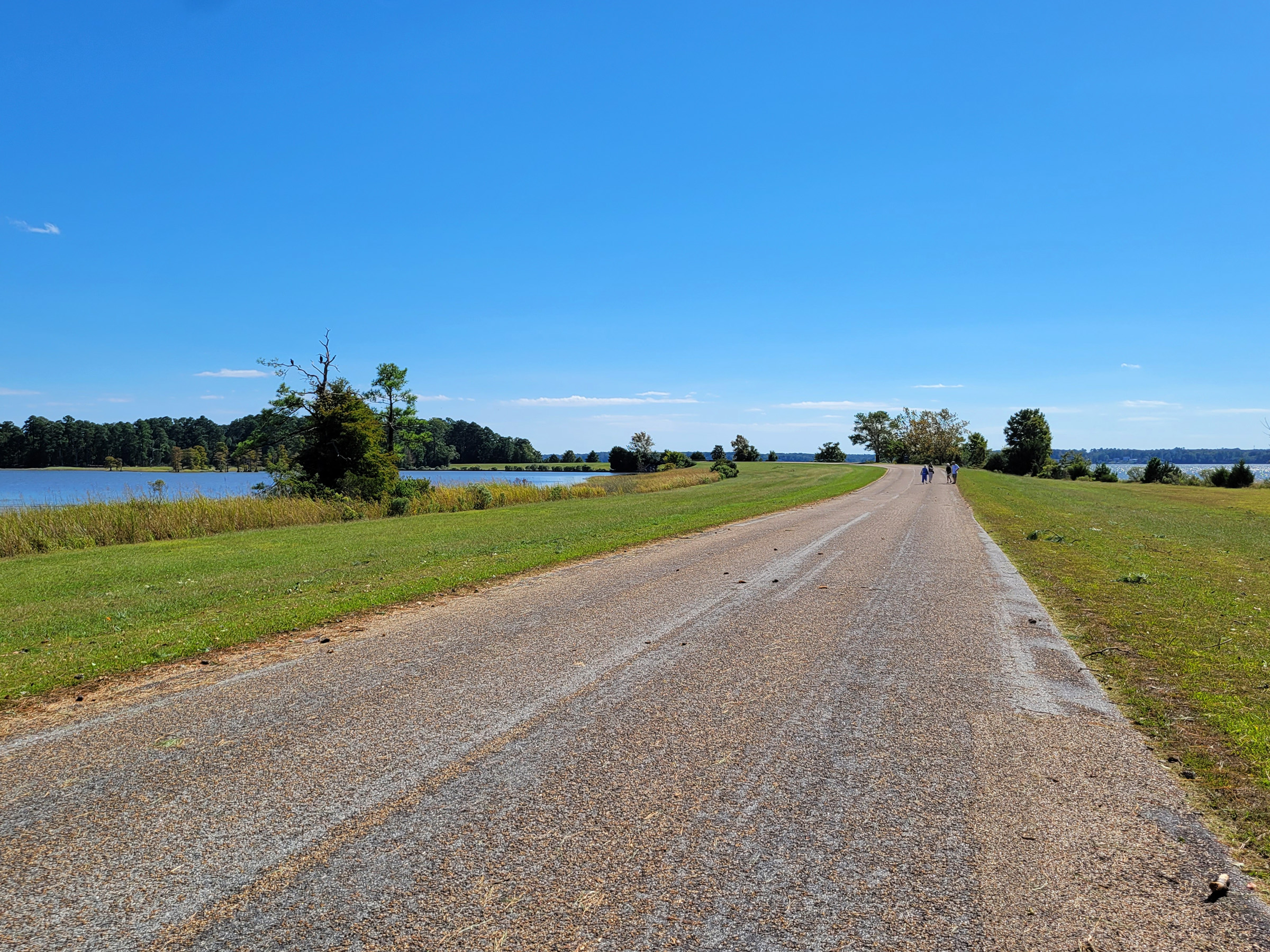 이러한 도로로 육지와 연결된 섬에 있는 비지터센터까지는 1마일 정도의 거리였지만, 1607년에 정착민들을 태우고 온 스미스 선장과 그를 죽음에서 구해줬다는 포카혼타스의 동상을 직접 보기 위해 땡볕에 이 길을 걸어서 왕복할 필요는 없을 것 같아 그냥 돌아나왔다. 분명 저 안쪽에 연방정부의 비지터센터와 주차장이 만들어져 있는데, 자동차 진입을 계속 막아놓았던 정확한 이유는 지금도 궁금하다...