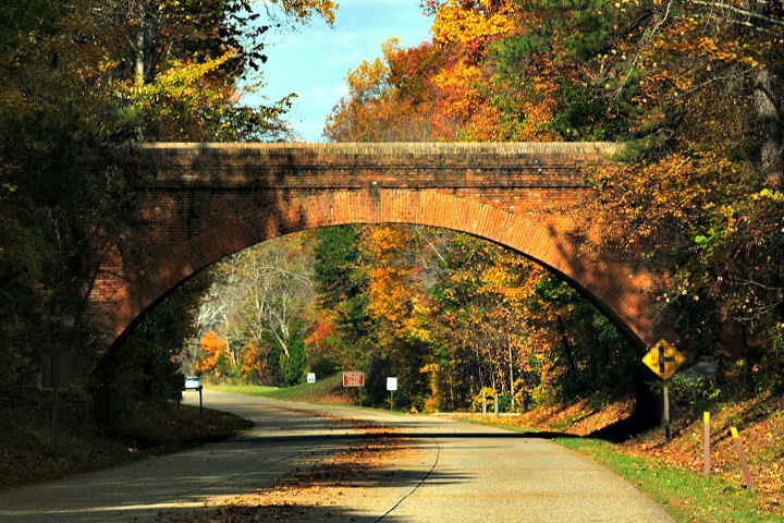 월요일이라 사모님은 조수석에서 '업무'에 바쁘셨기 때문에, 당시와 가장 비슷한 느낌의 사진을 한 장 가져왔다. 도로는 속도를 내지 못하도록 일부러 거친 자갈 콘크리트로 포장을 해놓고, 바닥에 아무 표시도 해놓지 않아서, 나무에서 떨어져 가운데 모인 낙엽들이 중앙선을 대신하고 있었다. 무엇보다 교차하는 일반 도로를 사진처럼 빨간 벽돌의 고가차도로 지나가도록 해놓아서 정말로 운전하는 내내 공원을 지나가는 특별한 느낌이었다.