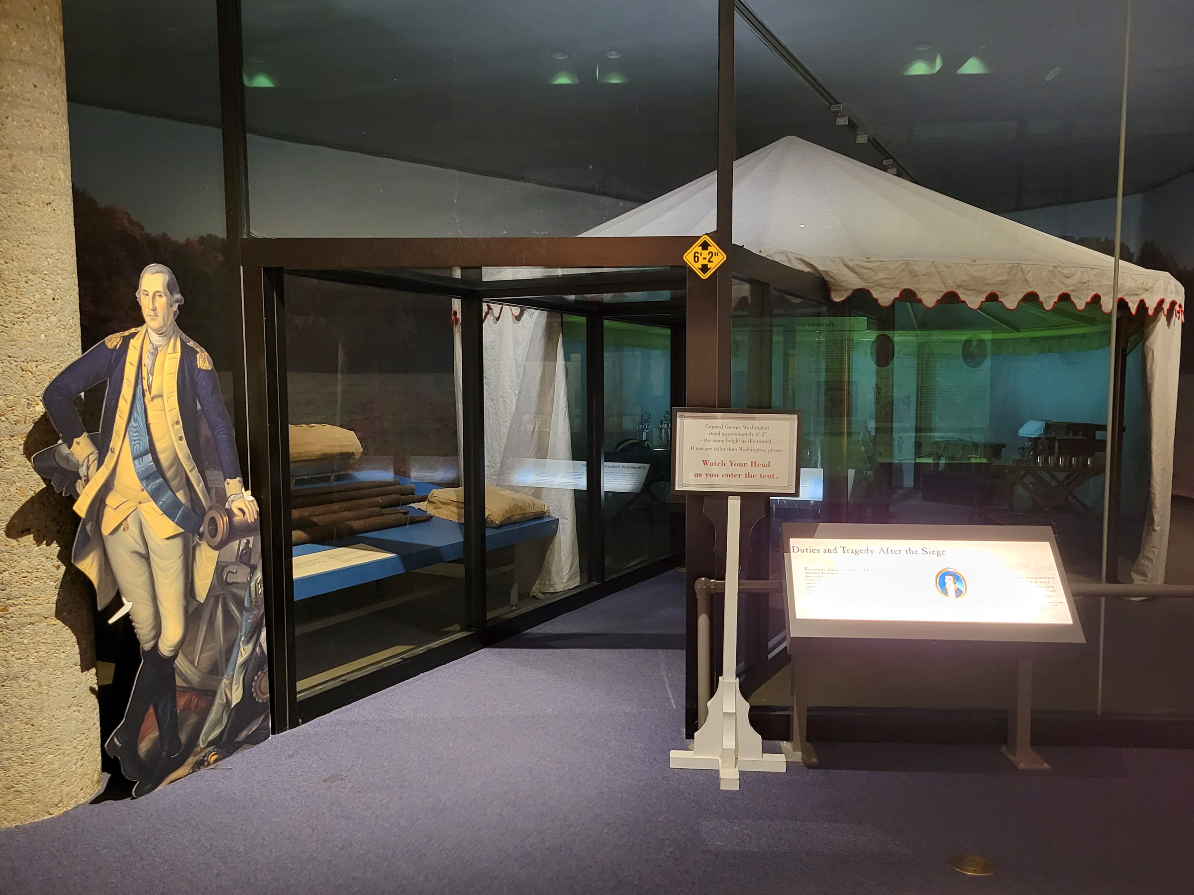 전시실에는 워싱턴의 야전막사를 재현해 놓았는데, 그 입구의 높이를 일부러 워싱턴의 키와 같은 6피트 2인치(188 cm)로 만들어 놓고는, 당신이 워싱턴보다 크다면 머리를 조심하라고 안내판을 세워 놓았다.