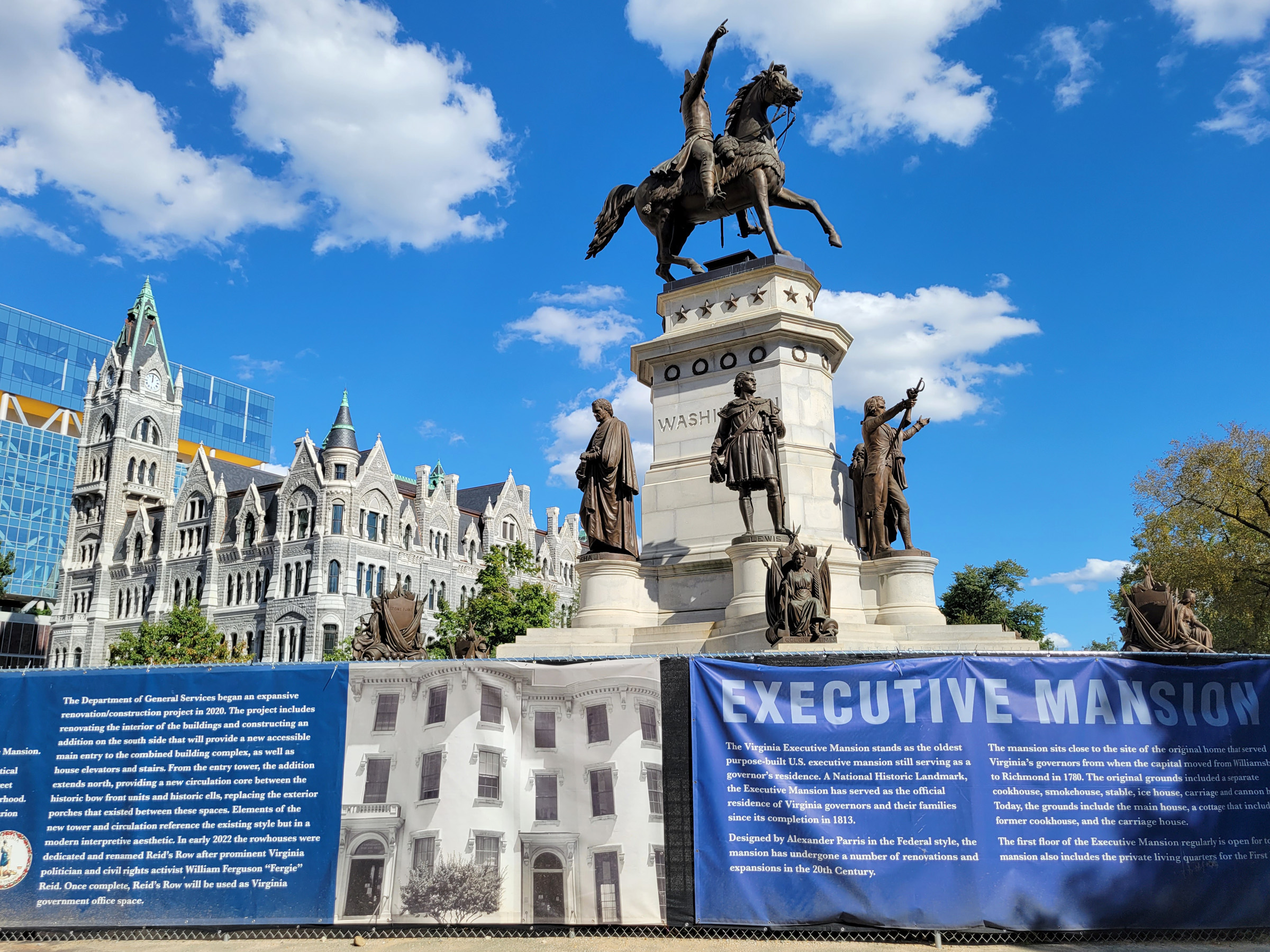 광장 바로 옆으로 1813년부터 지금까지 200년 넘게 계속 사용되고 있어서, 미국에서 가장 오랫동안 유지되고 있는 주지사 관저라고 하는 이그제큐티브 맨션(Executive Mansion)이 자리잡고 있다. 즉, 작년에 선거로 당선이 되었던 공화당의 글렌 영킨(Glenn Youngkin) 버지니아 주지사 가족도 공식적으로 저 집에 살고있다는 뜻이다.