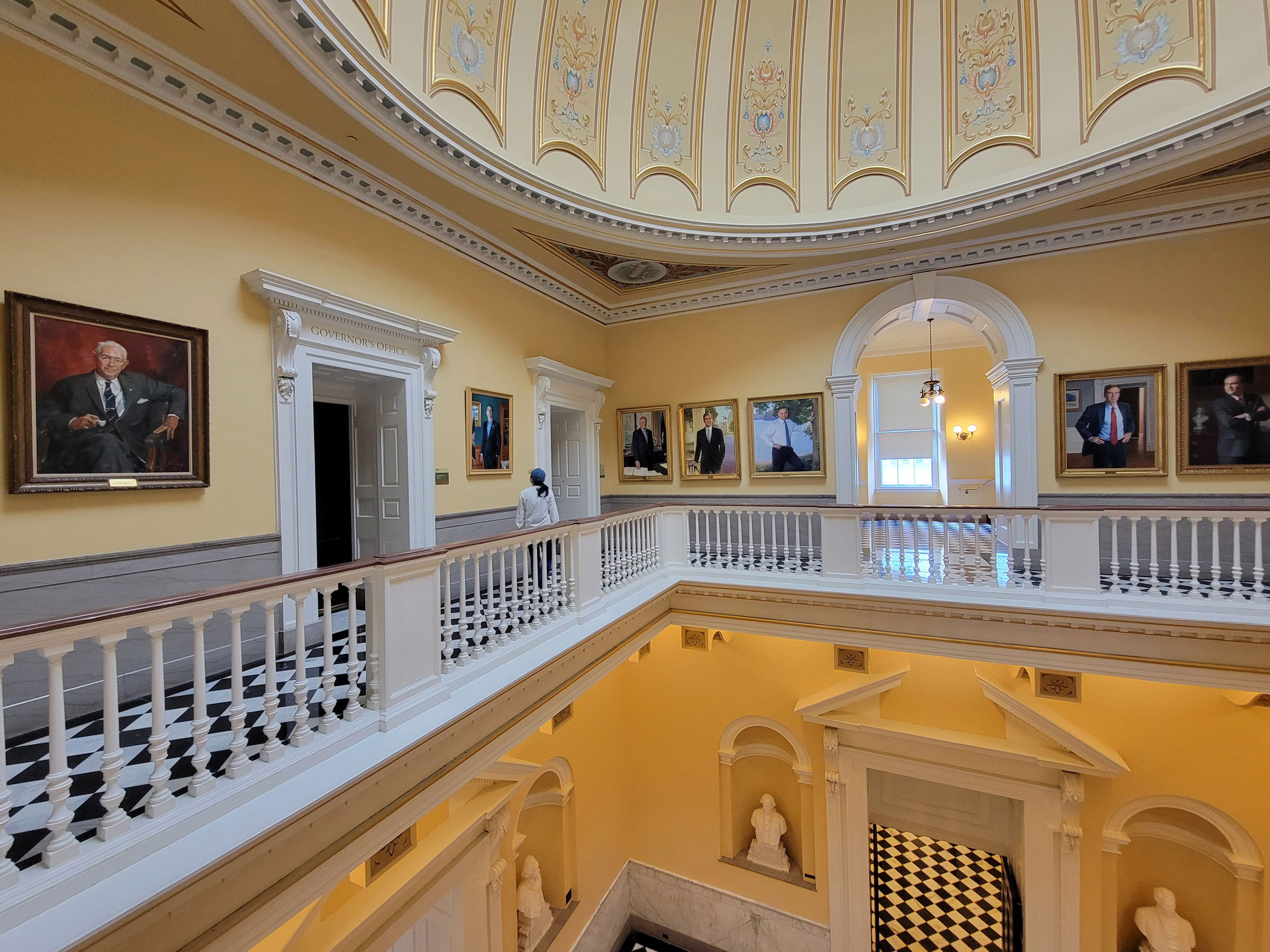 윗층의 사각형 발코니 벽에는 역대 주지사들의 초상화가 빙 돌아가며 걸려있고,