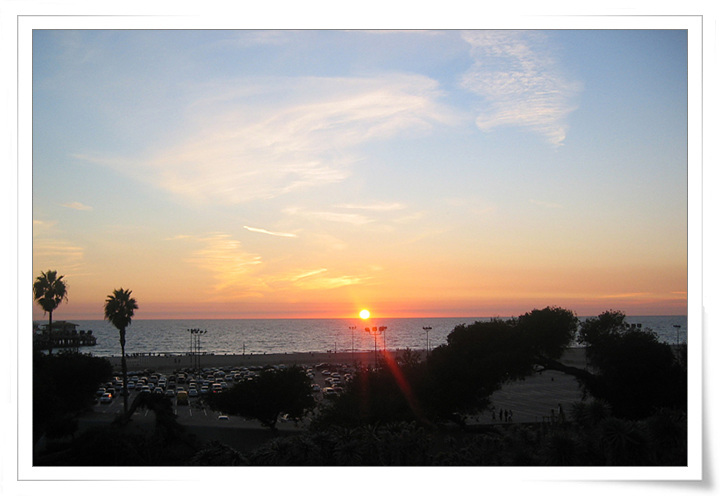미국 LA로 이사온 후 처음, 2007년 11월 3일에 야자수가 서있는 태평양 바다로 떨어지는 해를 사진에 담았던 모습이다. (사진이나 여기를 클릭하면 당시 위기주부의 첫번째 게티센터/산타모니카 여행기를 보실 수 있음)