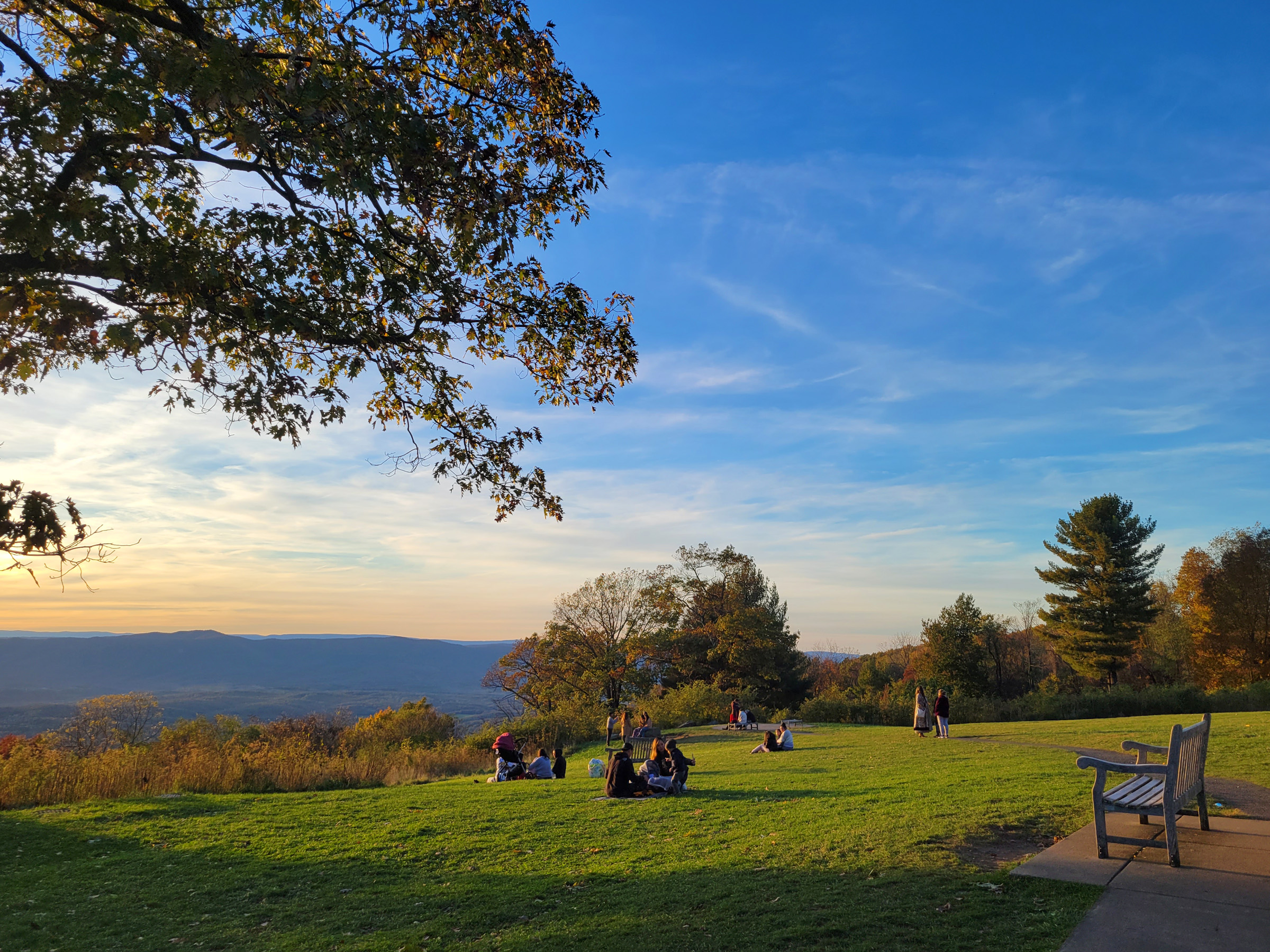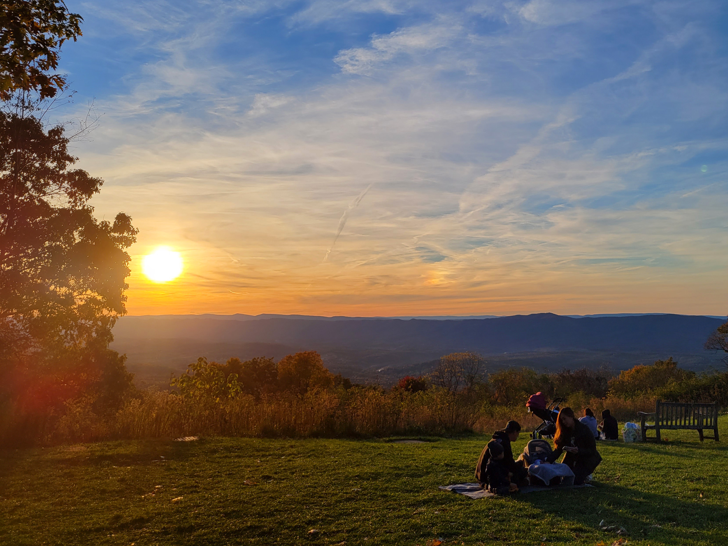 산맥의 서쪽이 내려다 보이는 다른 전망대에 차를 세웠는데, 남서쪽에 낮게 자리잡은 짧은 해가 긴 그림자를 만들고 있다.
