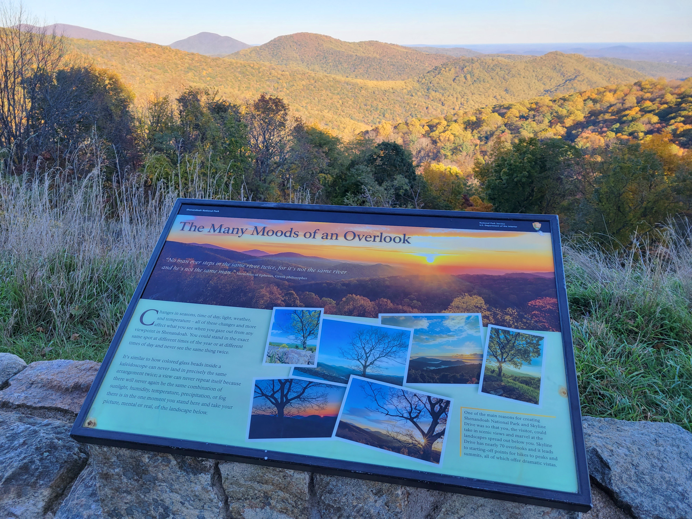 국립공원을 종단하는 스카이라인 드라이브(Skyline Drive)에 있는 약 70개의 전망대 중 한 곳에 차를 세웠더니, 안내판에 아래와 같은 글귀가 적혀있는게 이 마지막 포스팅과 뭔가 어울리는 듯 하다.