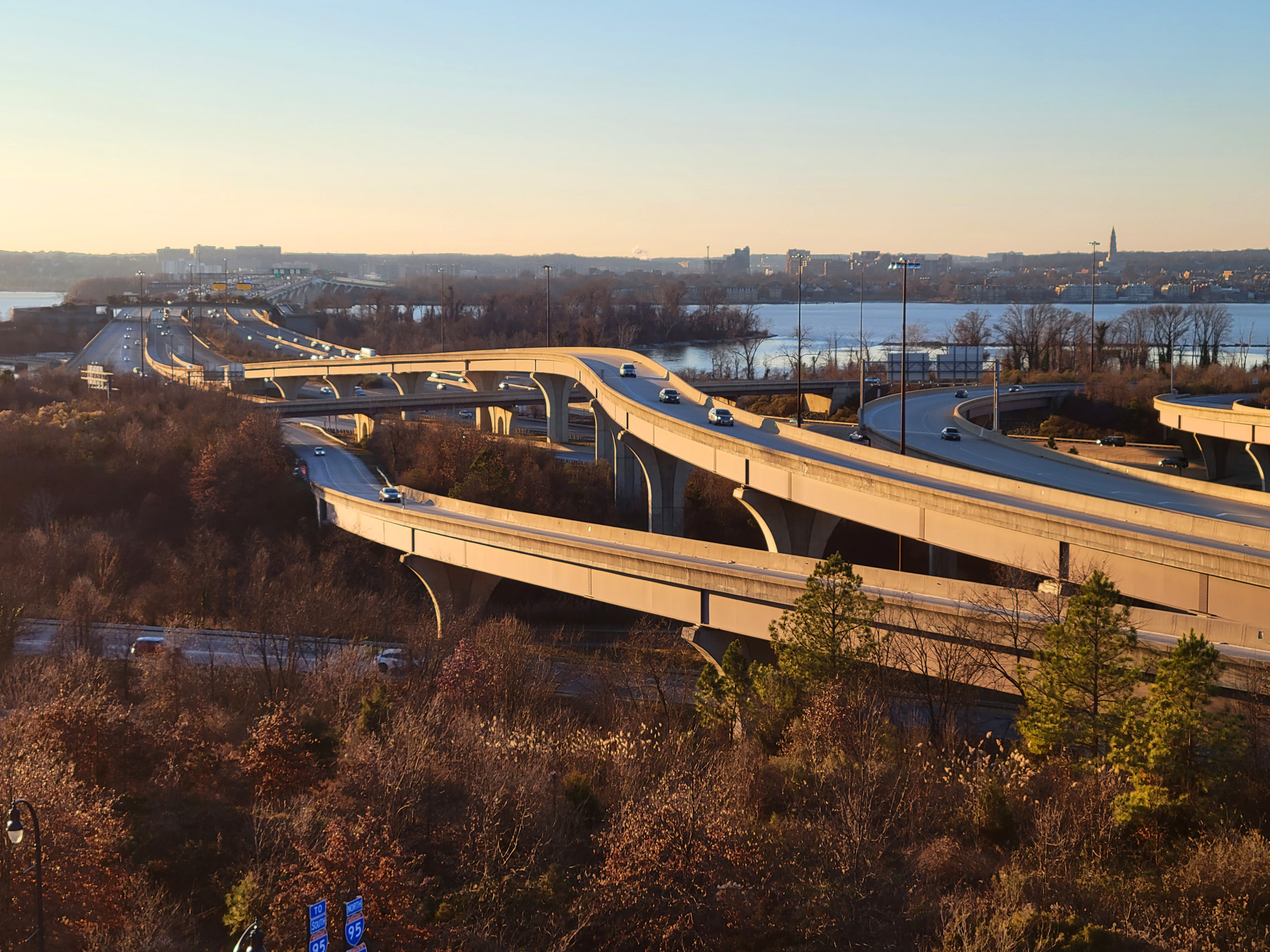 서쪽은 포토맥 강을 건너는 우드로윌슨 기념다리가 내려다 보이는데, 강건너 오른편에 뾰족하게 높이 솟은 기념탑과 그 아래 알렉산드리아(Alexandria) 마을의 모습은 여기를 클릭해서 지난 달에 방문했던 여행기를 보시면 된다.