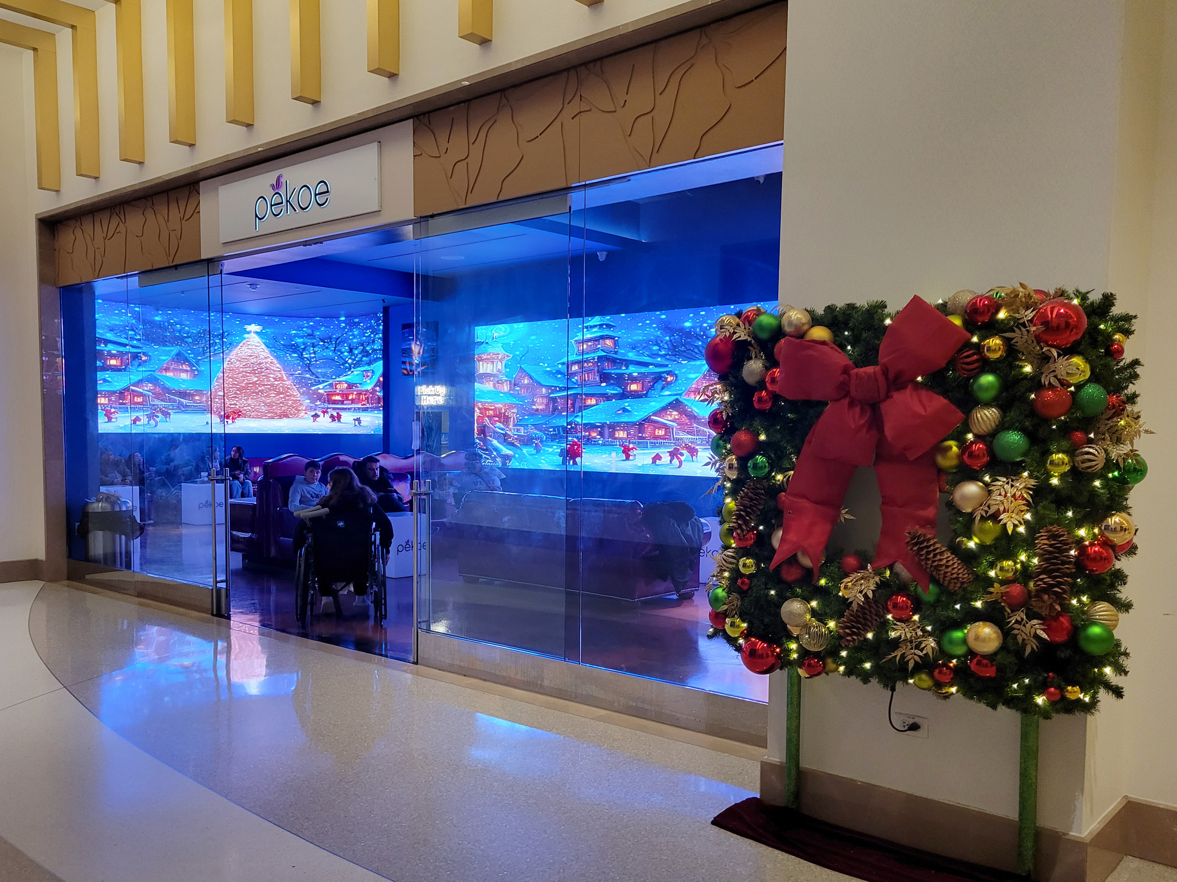 내부의 벽 두 면을 가득 채운 대형화면에 눈 내리는 마을의 풍경을 보여주고 있던 여기는 보바 음료수를 파는 곳이었다.