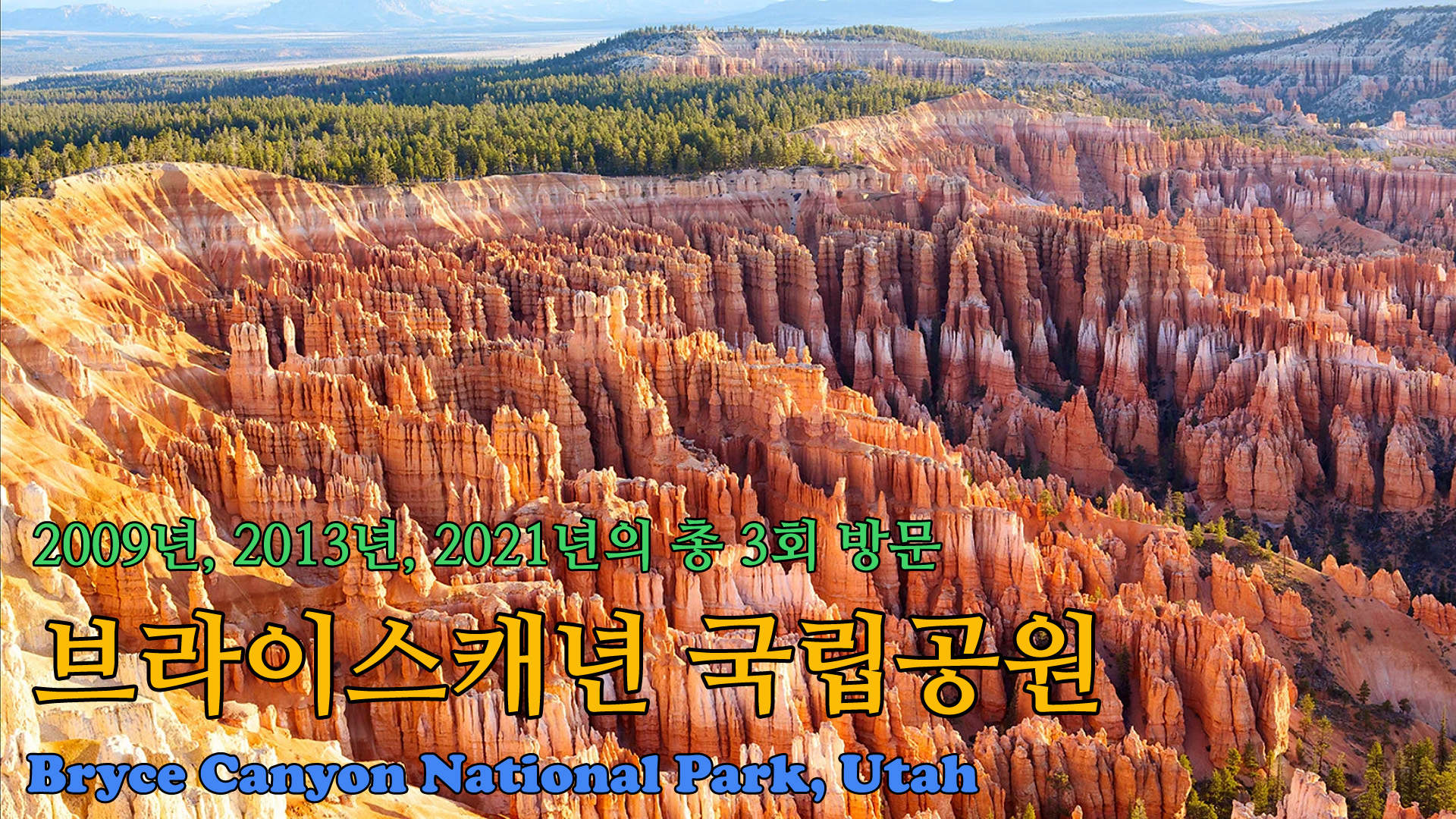 미서부 유타(Utah) 주의 5개 국립공원들 중에서 브라이스캐년을 제일 먼저 완전정복 동영상을 만들어 보았는데, 나머지 4곳들도 모두 제작을 하게 될 지? 그 전에 포기하지 않도록 많은 응원 부탁드립니다! ^^