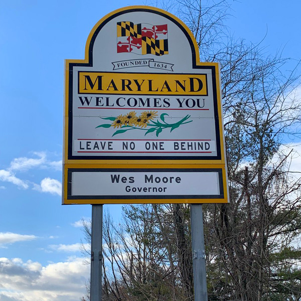 해안을 따라 남쪽으로 20마일 정도만 내려가면 나오는 메릴랜드(Maryland) 주의 최신 환영간판 사진을 인터넷에서 가져왔다. 특이한 주깃발 등에 대해서는 봄방학 여행기 마지막 편에 소개할 예정이므로 건너뛰고, 올해 취임한 젊은 흑인 주지사인 웨스 무어(Wes Moore)의 선거공약이었던 "Leave No One Behind" 문구가 새로 덧붙여진 모습이다. (옛날 지혜의 학교 벽에 붙어있던, 미국 교육부의 "No Child Left Behind" 모토와 비슷함) 참고로, 작년까지 메릴랜드 주지사는 '한국사위' 래리 호건(Larry Hogan)이었고, 사업가 출신이었던 그의 문구는 "We're Open for Business"였다.