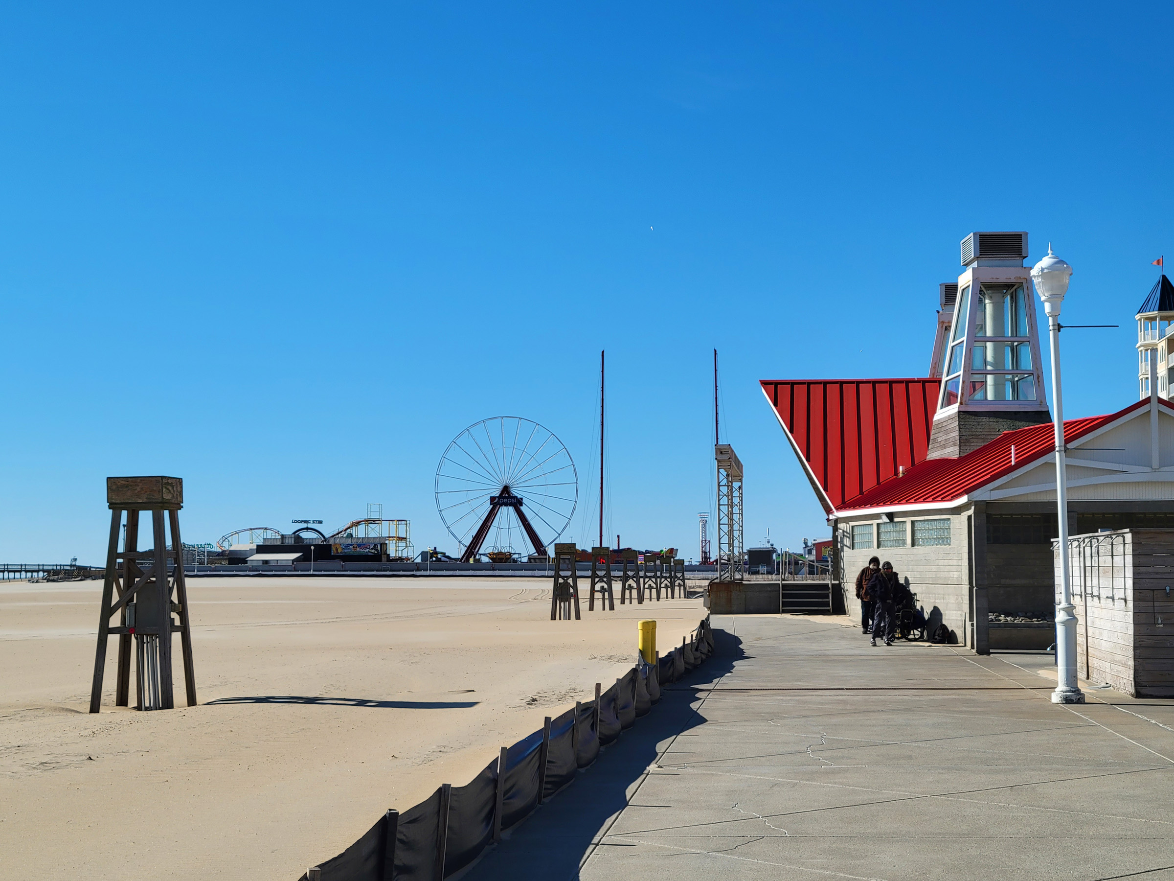 정말 미동부의 바닷가는 딱 여름 한 철만 장사를 하는지, 아침에 문을 연 식당이 없어서 한참을 헤매다가 겨우 찾은 가게에서 베이글과 커피를 먹은 후에, 입구부터 아주 멋지게 만들어 놓은 오션시티 보드워크(Ocean City Boardwalk)를 찾아왔다. (구글맵으로 위치를 보시려면 클릭)