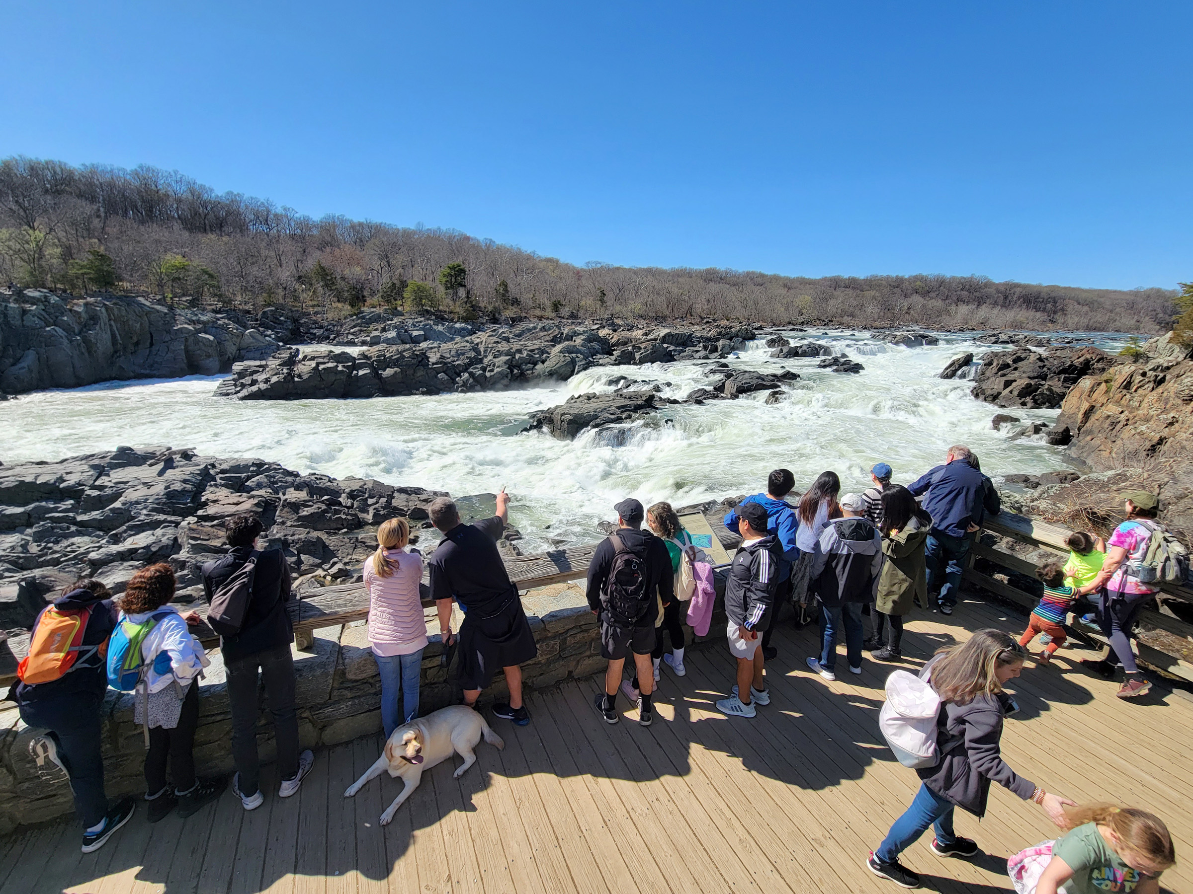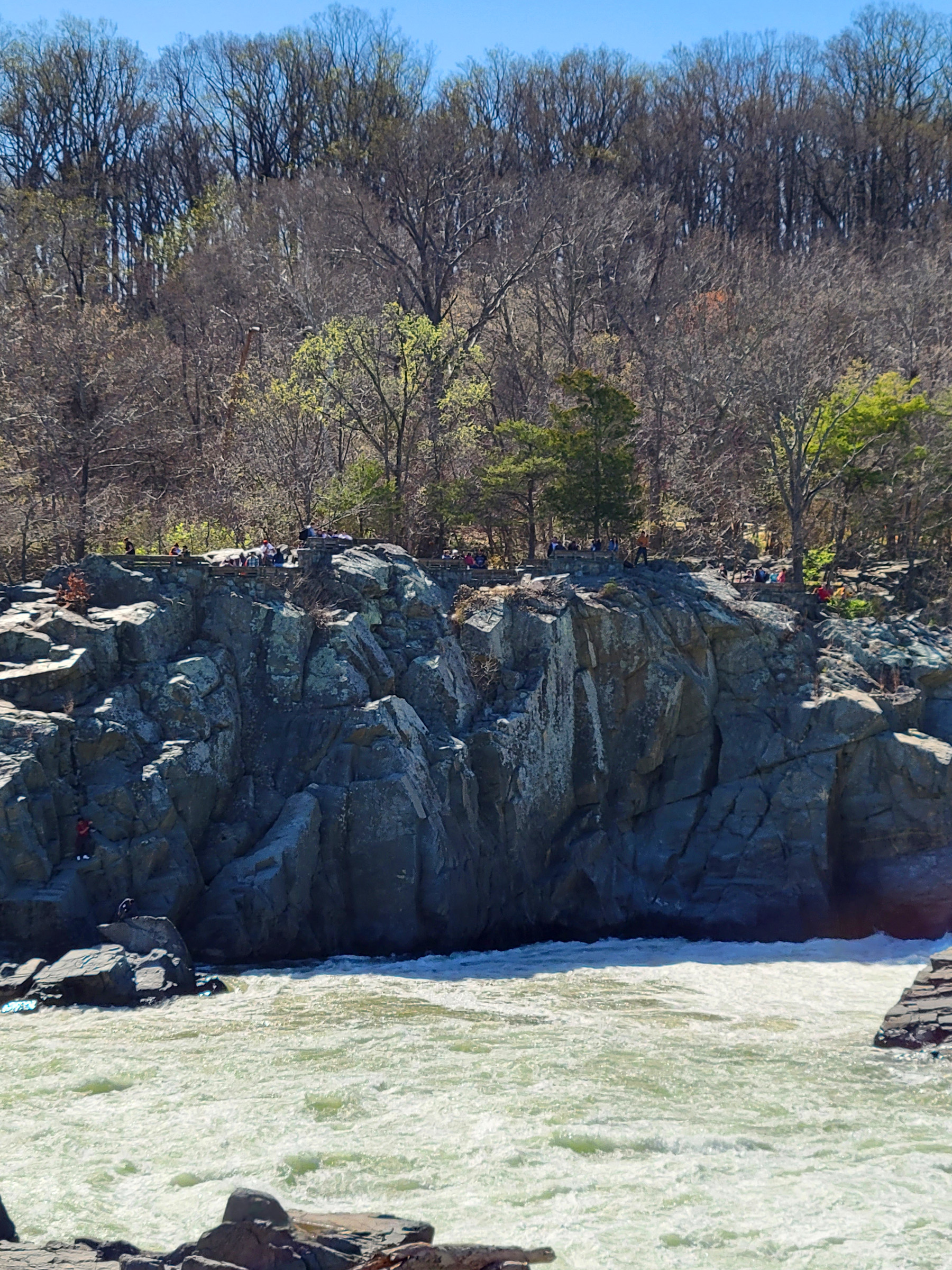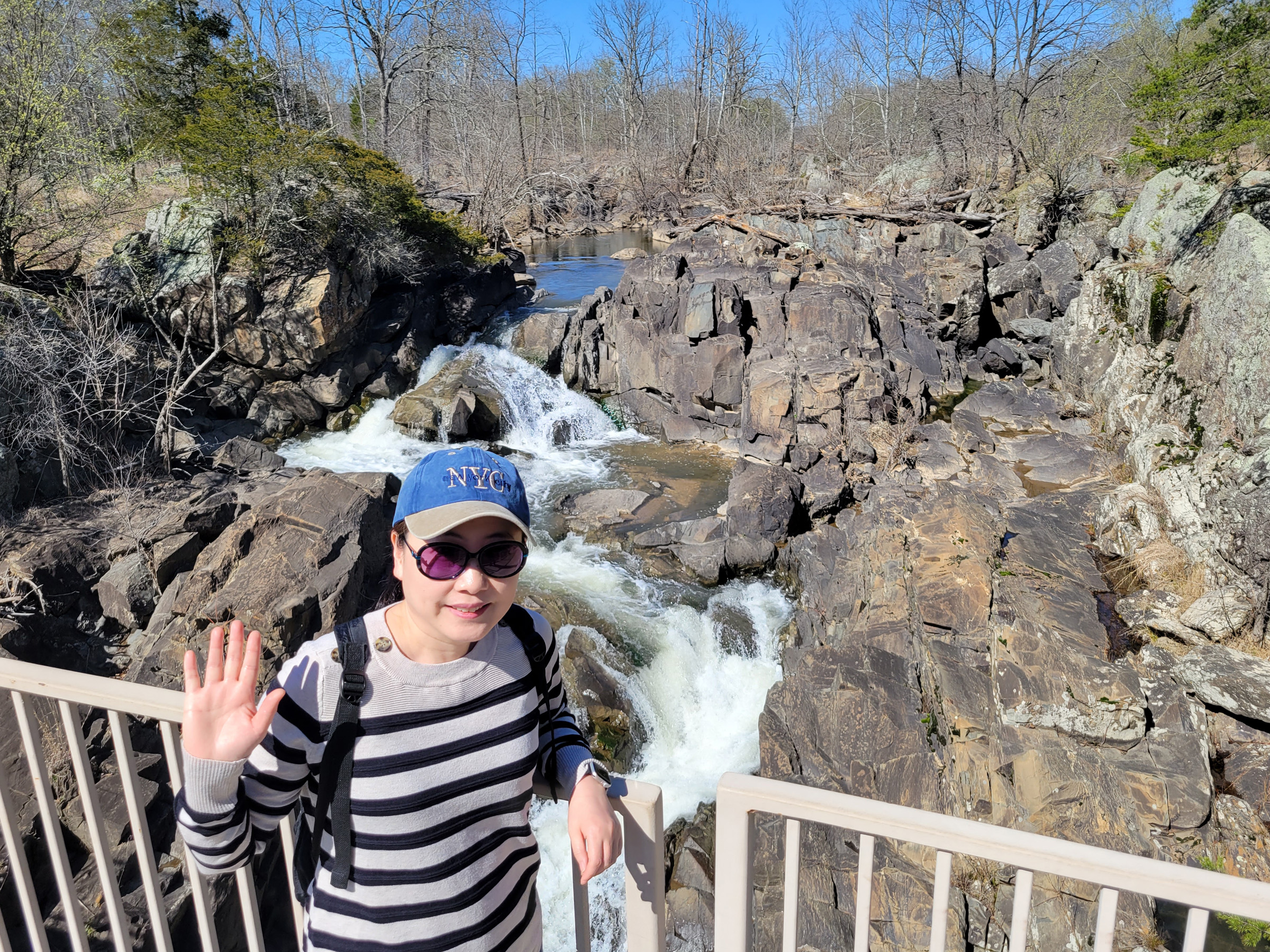 바위섬 사이로 포토맥 강이 갈라져 좁게 흐르는 급류를 바로 건너게 된다. 위기주부의 표정이 약간 이상한 이유는 사진을 찍기 위해 기대는 순간에 난간이 밖으로 갑자기 밀리면서 흔들렸기 때문이다.