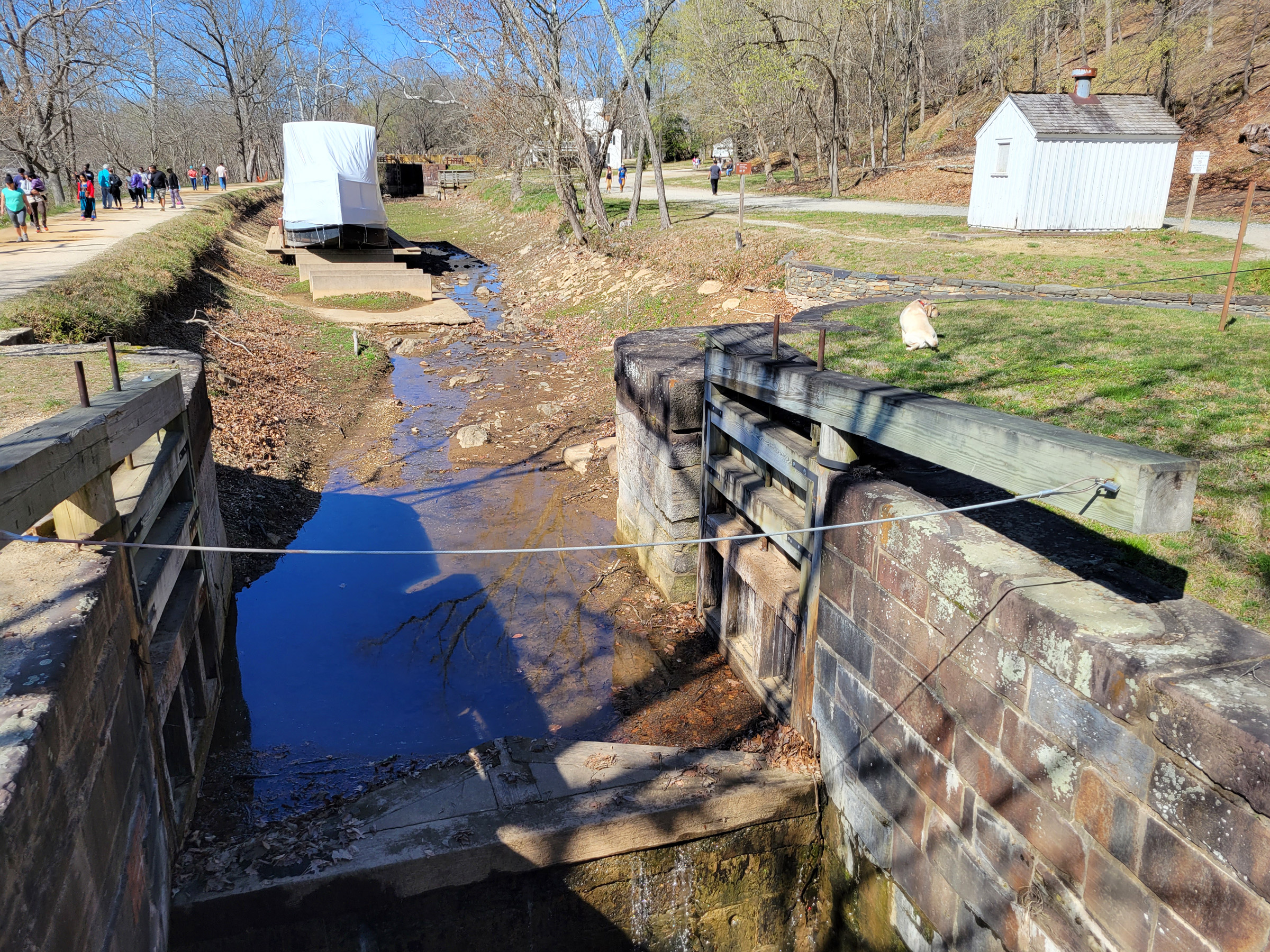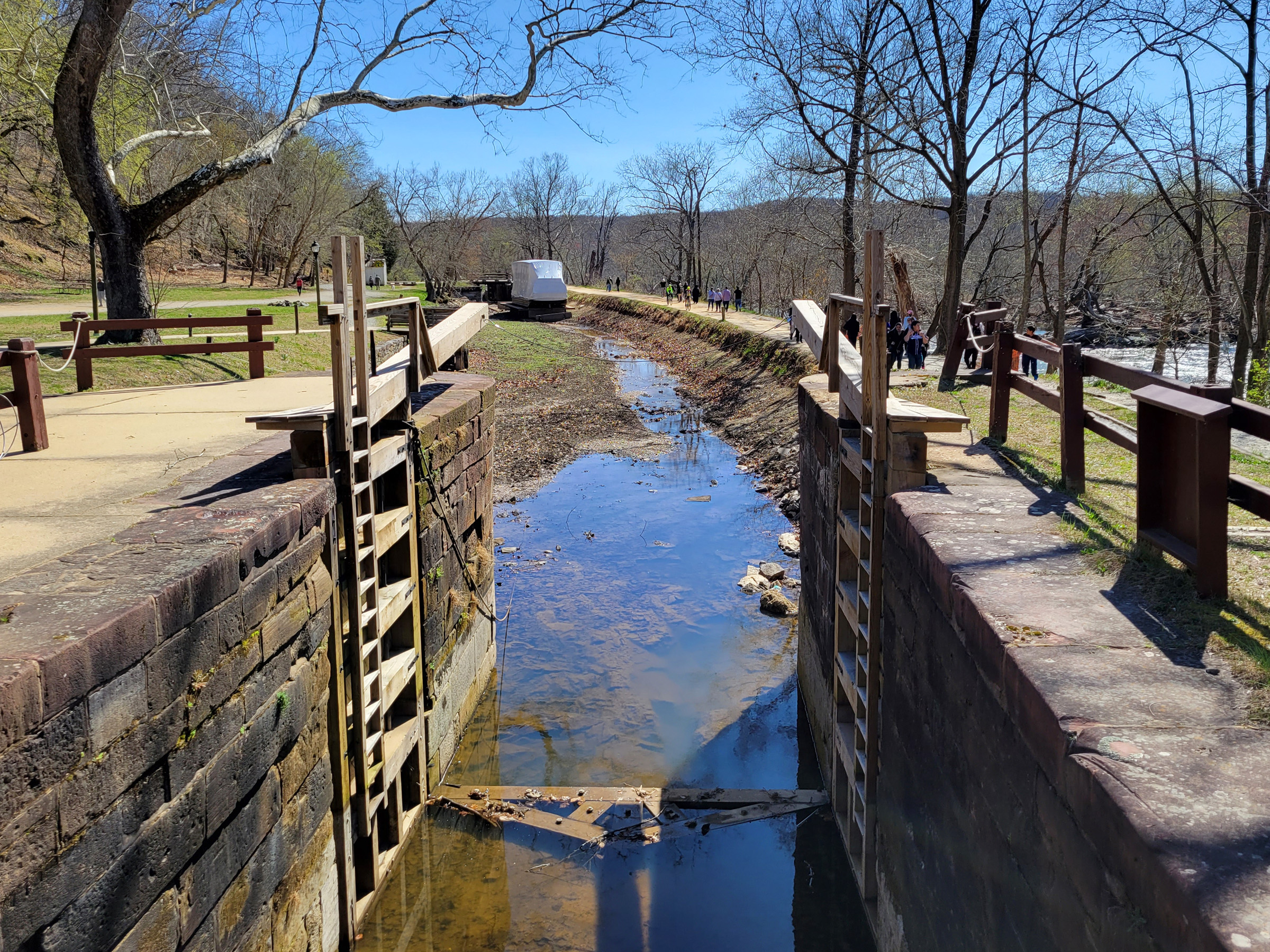 매표소를 통과한 후에 나오는 큰 주차장에도 차가 빼곡했고, 비지터센터로 걸어가는 길에도 따뜻한 봄날을 맞아 사람들이 많았다. 역사를 계속 살펴보면... 워싱턴 조지타운에서 메릴랜드 컴벌랜드(Cumberland)까지 184.5마일(297 km)의 C&O운하는 1950년대에 완전히 갈아엎고 강변도로를 만들자는 계획이 추진되었지만, 연방대법원 판사 William O. Douglas의 주도로 만들어진 보호단체의 노력으로 1961년에 내셔널모뉴먼트(National Monument)로 지정 후, 1971년에 체사피크-오하이호 운하 국립역사공원(Chesapeake and Ohio Canal National Historical Park)이 만들어졌다.