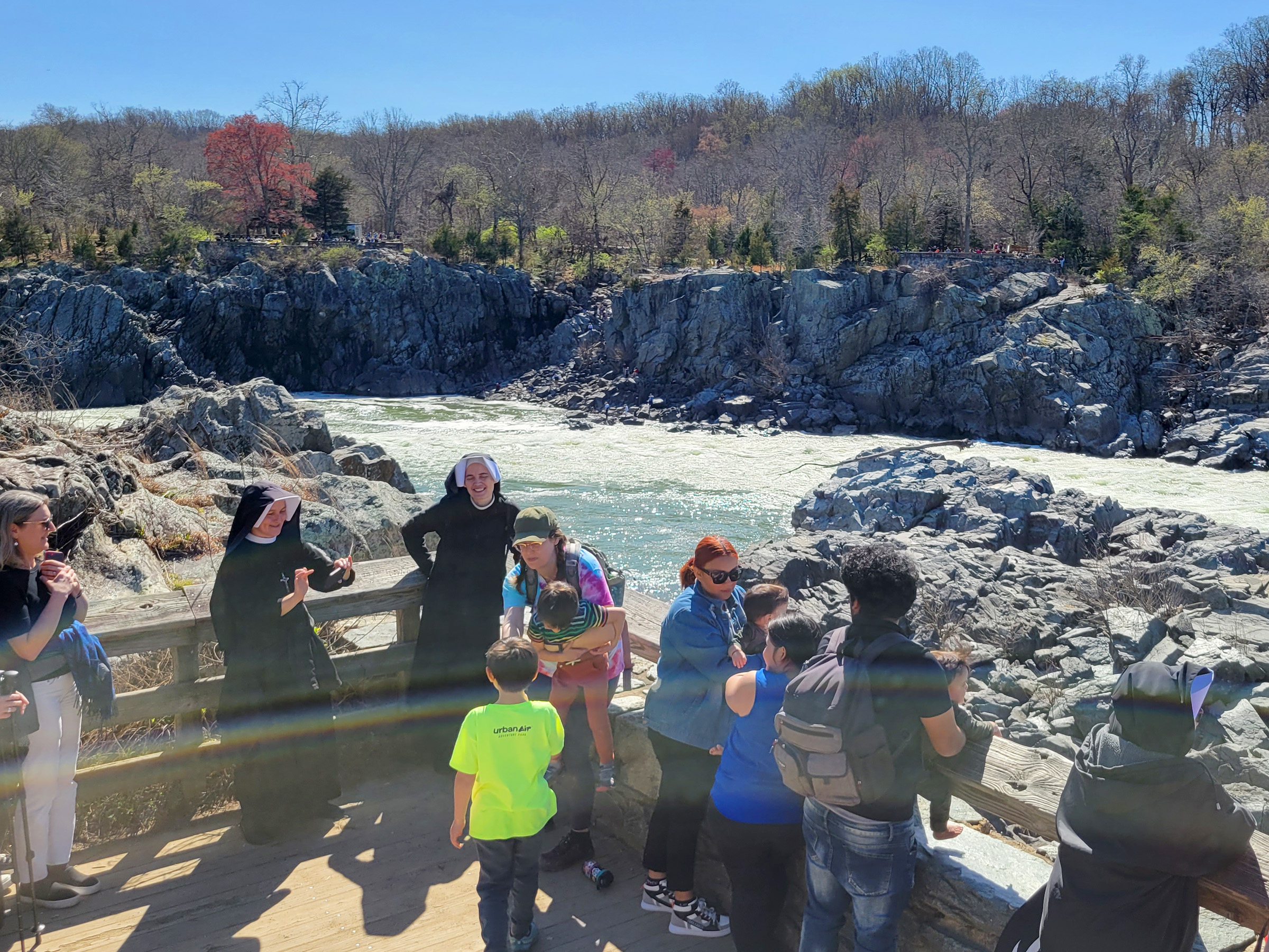 하류쪽으로 고개를 돌리니 일요일인데 단체로 구경을 오신 수녀님들이 계셨다. 그리고 강 너머로는 또 두 곳의 전망대가 보이는데, 오른쪽이 2번이고 왼쪽에 아직도 NPS 홍보용 트럭이 세워져 있는 곳이 3번 전망대로 생각된다.