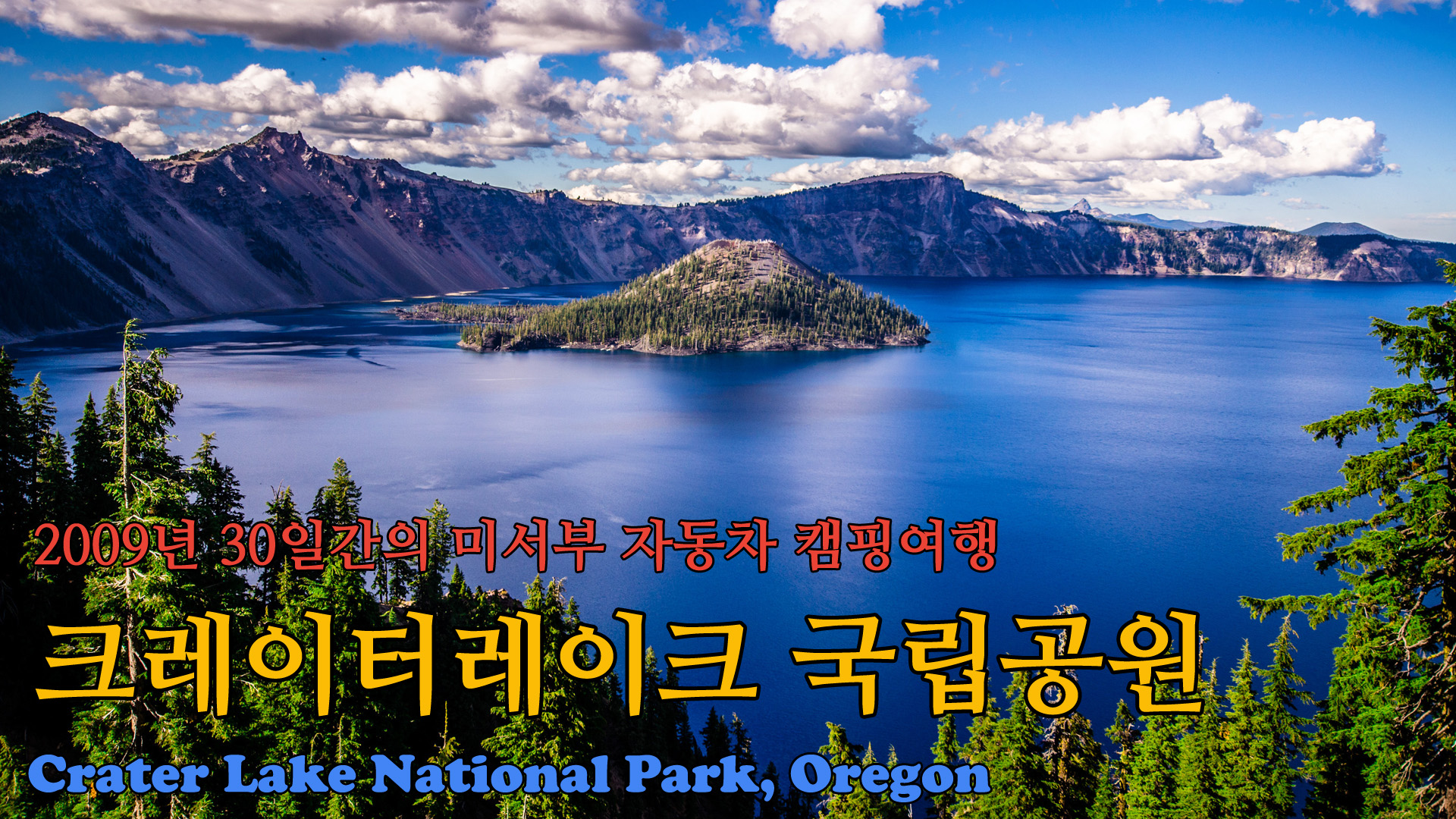 미국 오레곤(Oregon) 주의 남쪽에, 미서부를 종단하는 인터스테이트 5번 고속도로의 동쪽에 위치한 크레이터레이크 내셔널파크(Crater Lake National Park)는 쉽게 찾아가기는 어려운 곳인데, 위기주부는 2009년 여름의 30일간의 미국/캐나다 자동차 캠핑여행에서 LA의 집으로 돌아가던 26일째에 방문을 했었습니다.