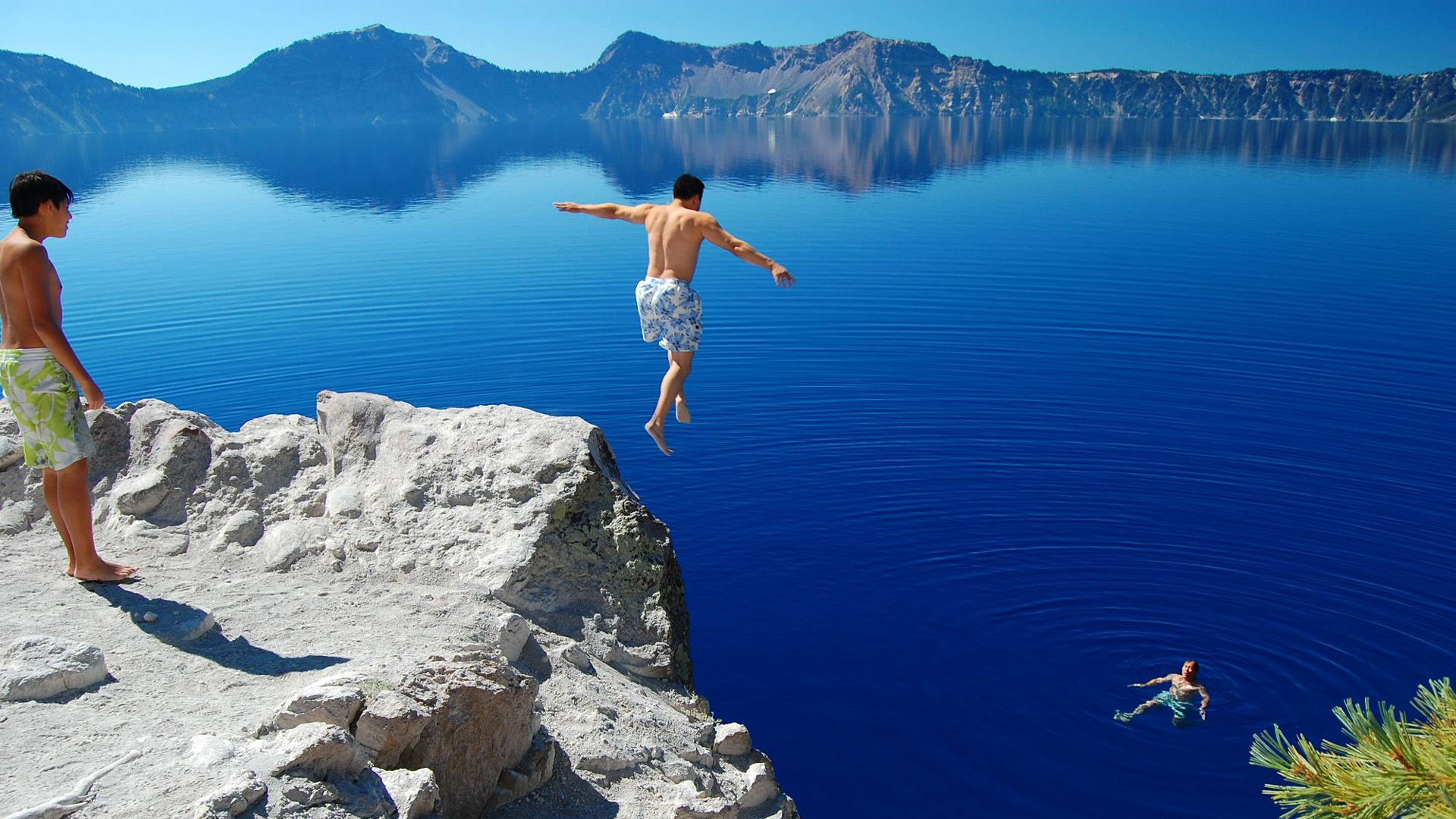 마지막 사진은 그 '거대하고 깊은 파란색'의 호수로 점프를 하는 모습으로 골라봤습니다. 풍덩~