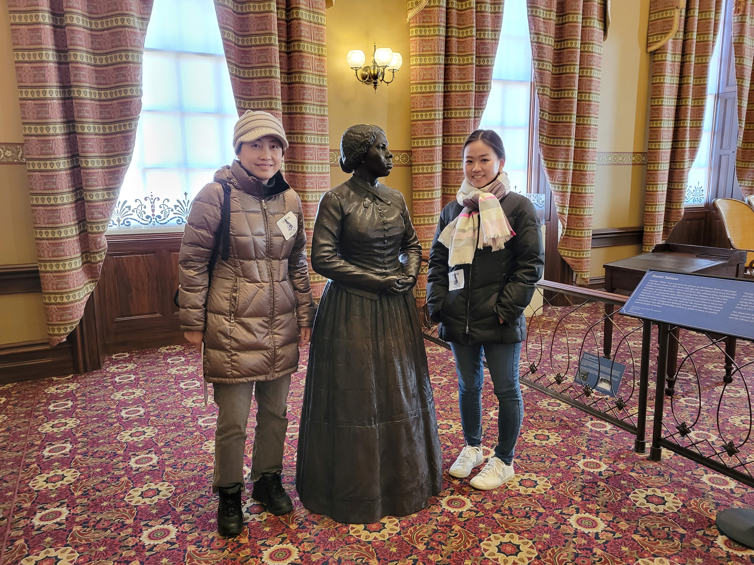 다른 출구 앞에 서있는 동상은 재작년 내셔널하버 여행기에서 반쪽 사진만 보여드렸던 노예제 폐지론자 프레더릭 더글라스(Frederick Douglass)로, 두 흑인의 동상은 2020년에 이 방에 세워졌다고 한다. 두 명 모두 당시 메릴랜드의 출생지가 국립역사공원과 국가유적지로 각각 지정이 되어 있어서, 직접 방문하게 되면 다시 블로그에 상세히 소개될 것 같다.