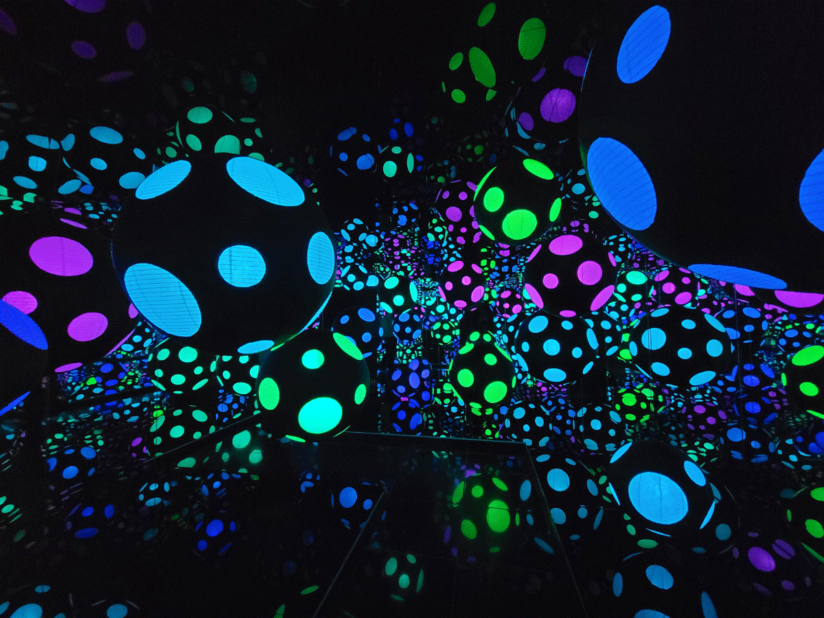 2018년 작품이라는 Infinity Mirrored Room—My Heart Is Dancing into the Universe ... 왠지 이케아에서 파는 동그란 종이등과 LED 색깔전구만 있으면 집에 하나 만들 수 있을 것 같은... 큰 거울도 많이 사야 되는구나~