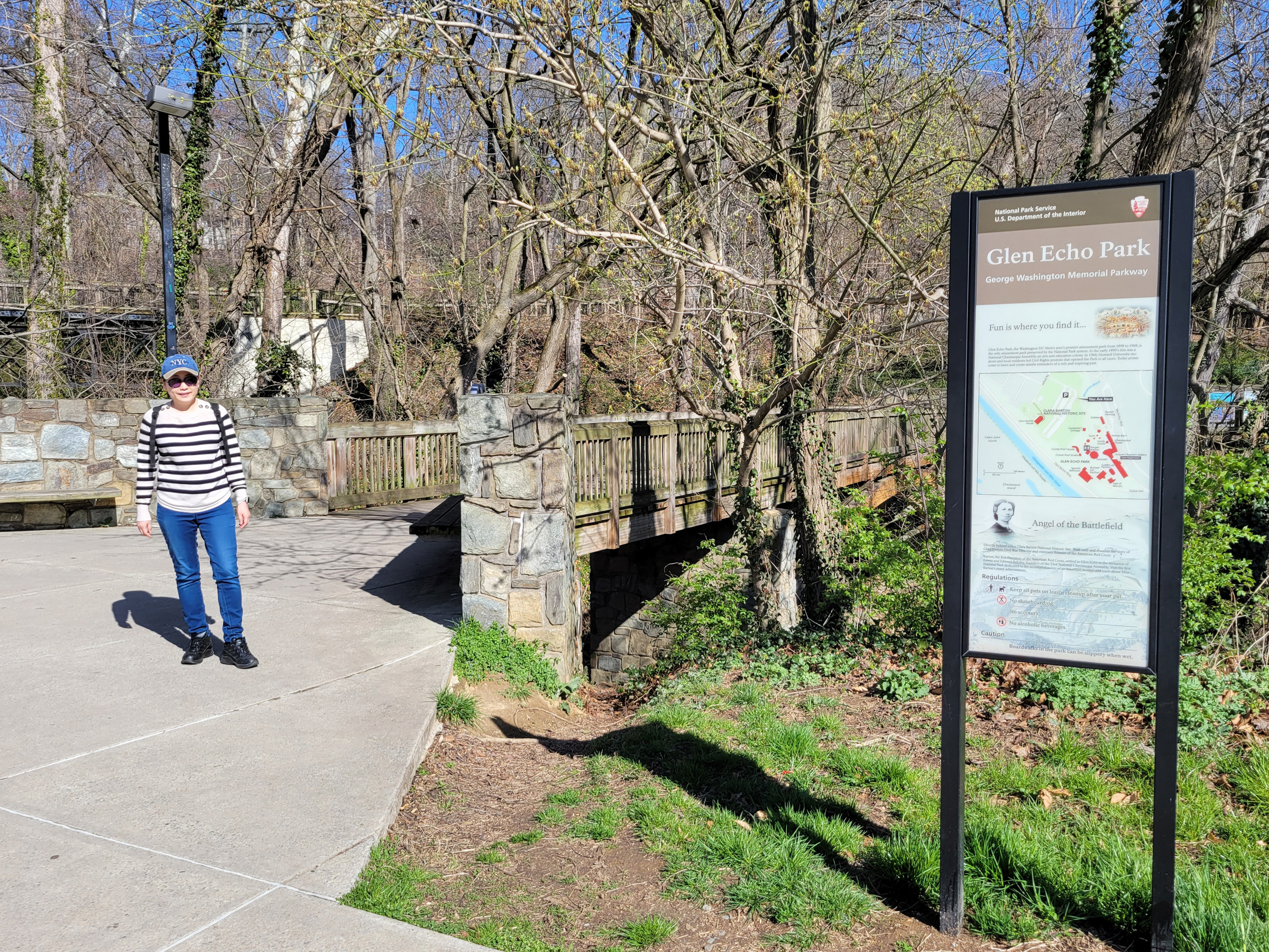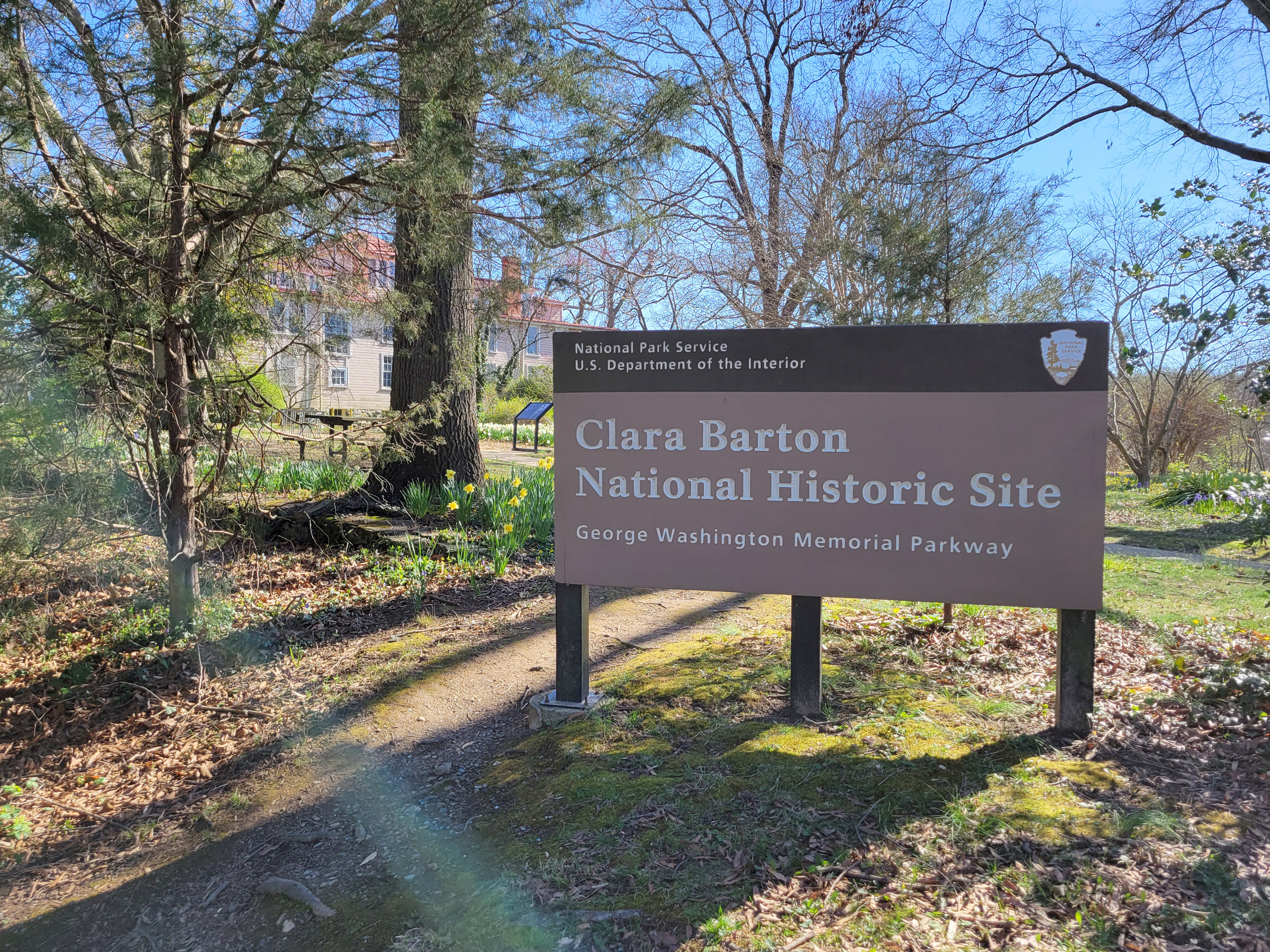 1974년에 지정된 클라라 바튼 국가유적지(Clara Barton National Historic Site)는 미국 국립공원청이 여성의 업적을 기리기 위해 만든 최초의 독립적인 오피셜유닛(official unit)이지만, 관리는 본 카테고리의 다른 곳들과 함께 조지워싱턴 기념도로(George Washington Memorial Parkway) 공원의 일부로 운영된다고 한다.
