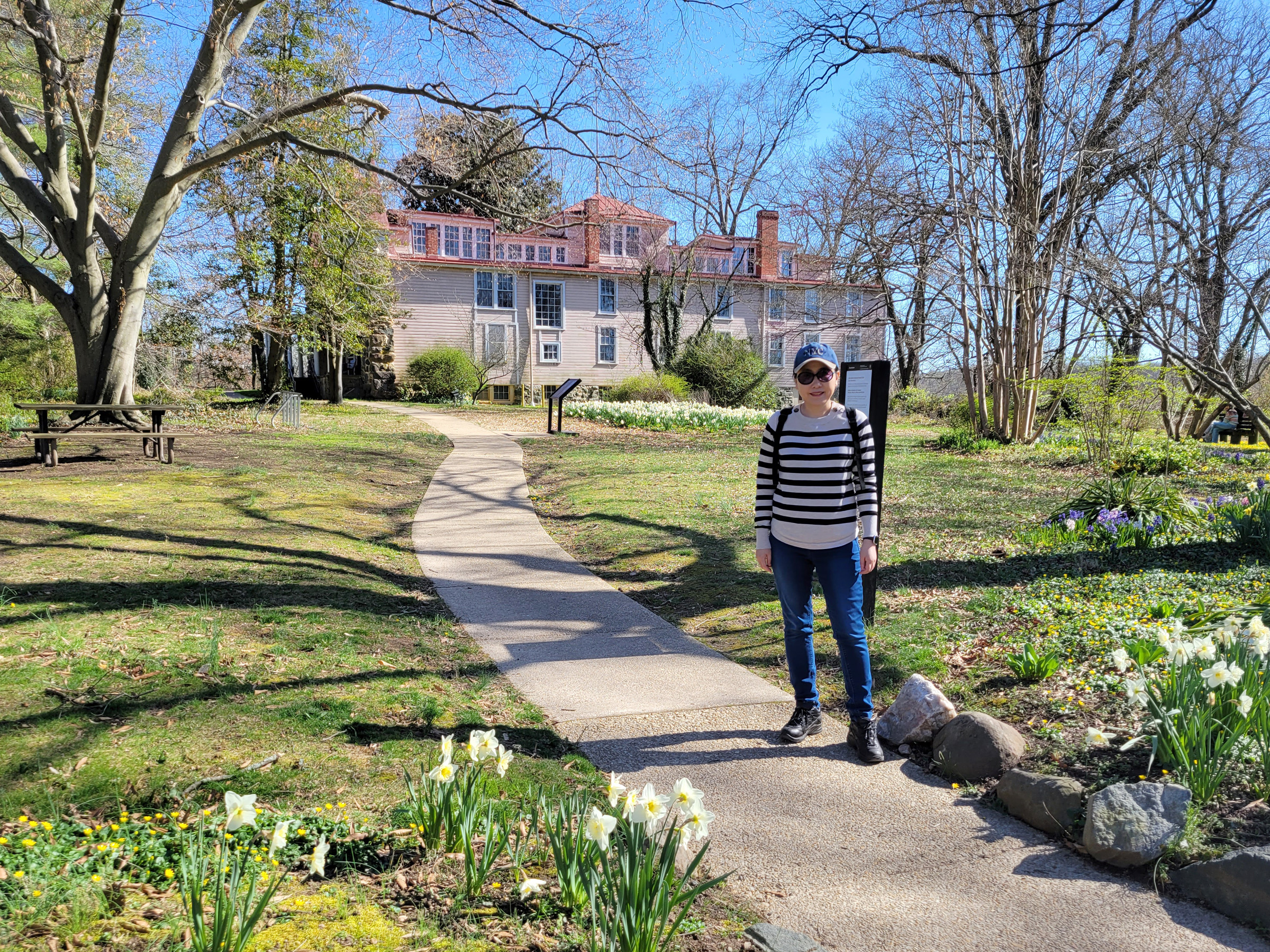 공원 간판 뒤로 보이던 저 커다란 집과 그리로 이어지는 이 정원이 국가유적지의 전부인데, 3월말의 봄꽃들이 많이 피어있었다. (구글맵으로 위치를 보시려면 클릭)