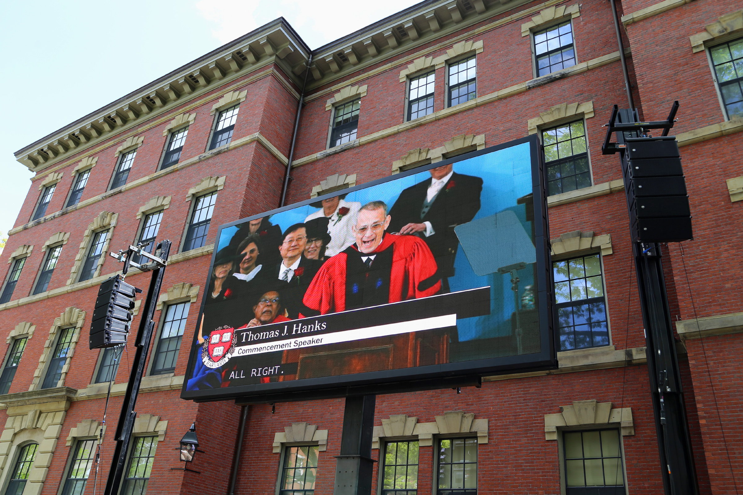 주요 행사가 열리는 '300주년 극장(Tercentenary Theatre)'은 실내가 아니고, 하버드에서 가장 유명한 건물인 와이드너 도서관과 위 사진에 보이는 뾰족한 메모리얼 교회 사이의 넓은 야외 잔디밭을 말한다.