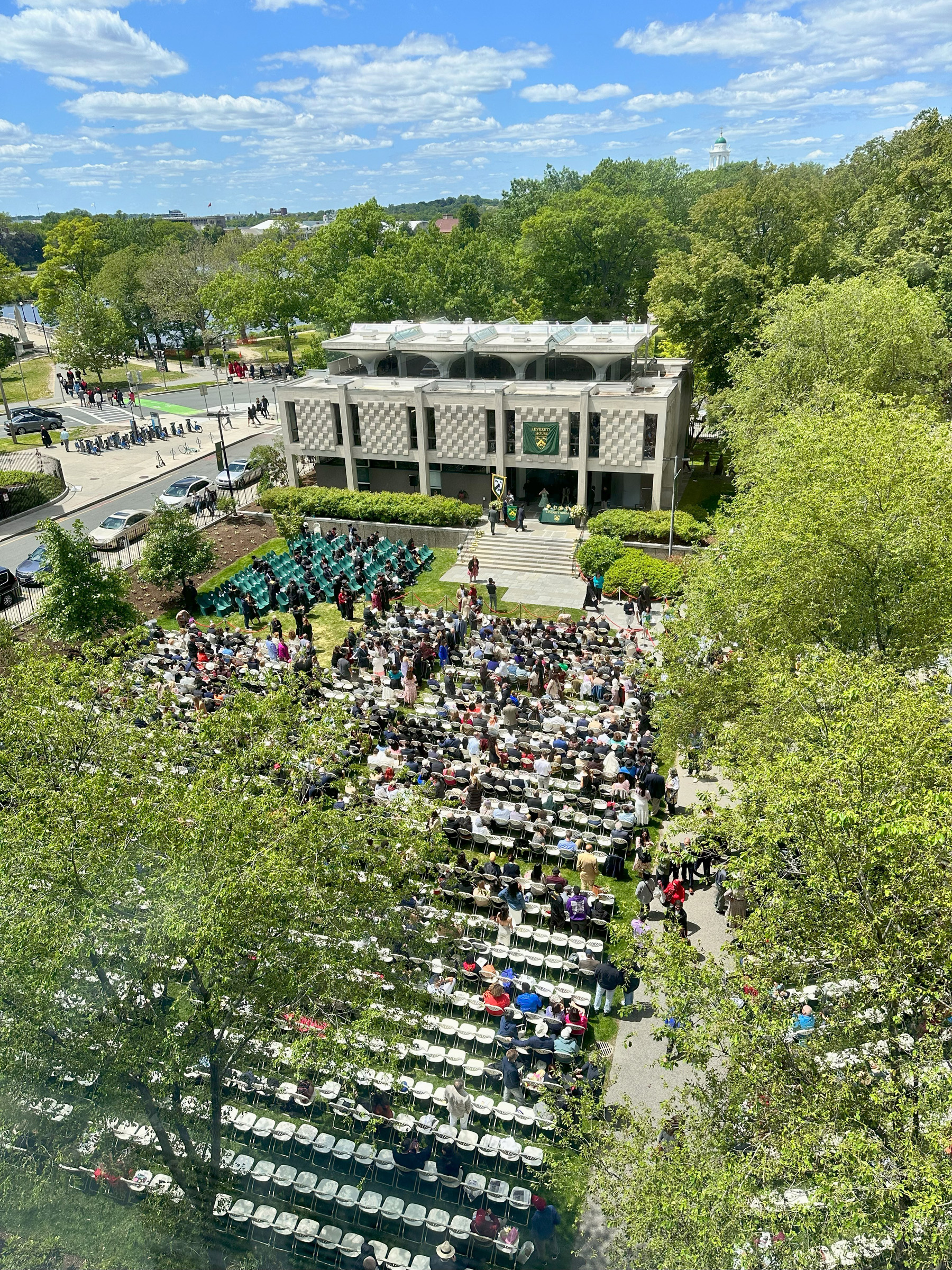 이번 학년도를 끝으로 은퇴하는 Lawrence S. Bacow 총장이 연설을 하는 모습인데, 4년전 포스팅에서도 지혜의 기숙사 방에 찾아와 등장을 해주셨던 분이라서 망원렌즈로 당겨서 보면서 아주 반가웠던 기억이다.