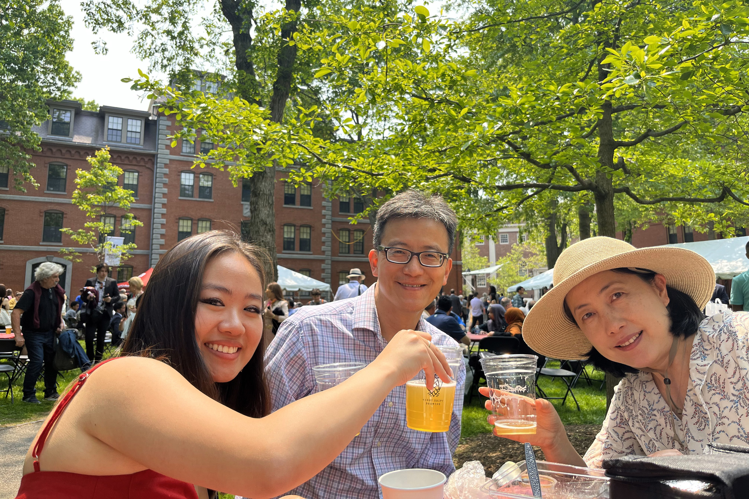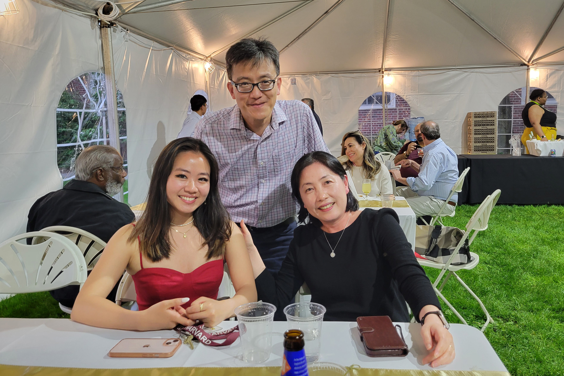 레버렛 기숙사 식당에서 친구 알렉스 가족과 함께 앉아서 식사를 했는데, 위기주부는 왜 접시를 들어서 보여주고 있나? 런천을 마지막으로 졸업식 주간 3일간의 모든 공식 행사가 끝났고, 우리 가족은 기숙사 방에 올라가 휴식을 취한 후에 간단한 저녁을 근처에서 함께 먹었다. 하버드 전통이 졸업식 후 기숙사에서 마지막 밤을 친구들과 꼴딱 새운 후에 찰스강변에 나가 일출을 보는 것이라는데, 지혜와 친구들은 너무 피곤해서 새벽 1시쯤에 잤지만 5시에 일어나 일출을 봤다고 한다.