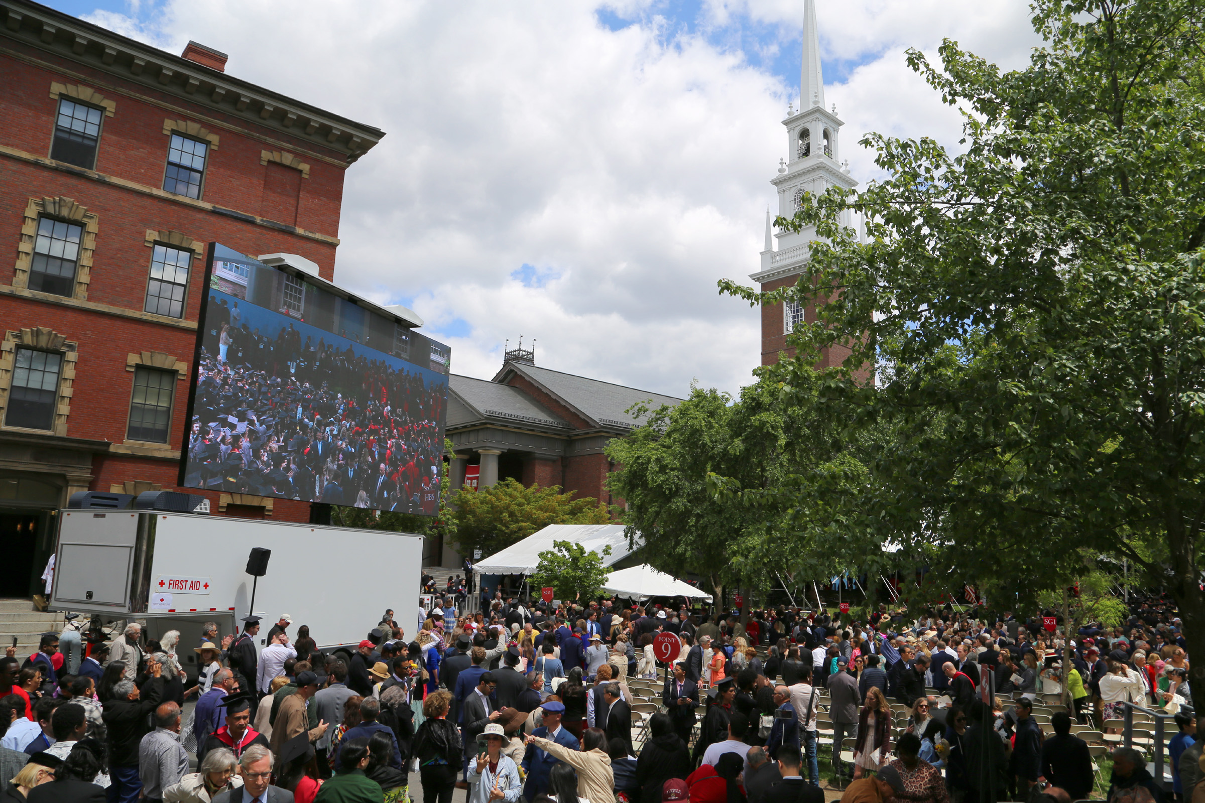 이 날은 도로에서 하버드 야드(Harvard Yard), 즉 캠퍼스로 들어가는 모든 문에서부터 이렇게 표와 소지품 검사를 해서 입장시키고 있었고, 졸업식 무대가 거의 보이지 않는 제일 뒤쪽의 의자까지 이미 빈자리가 거의 하나도 없었다!