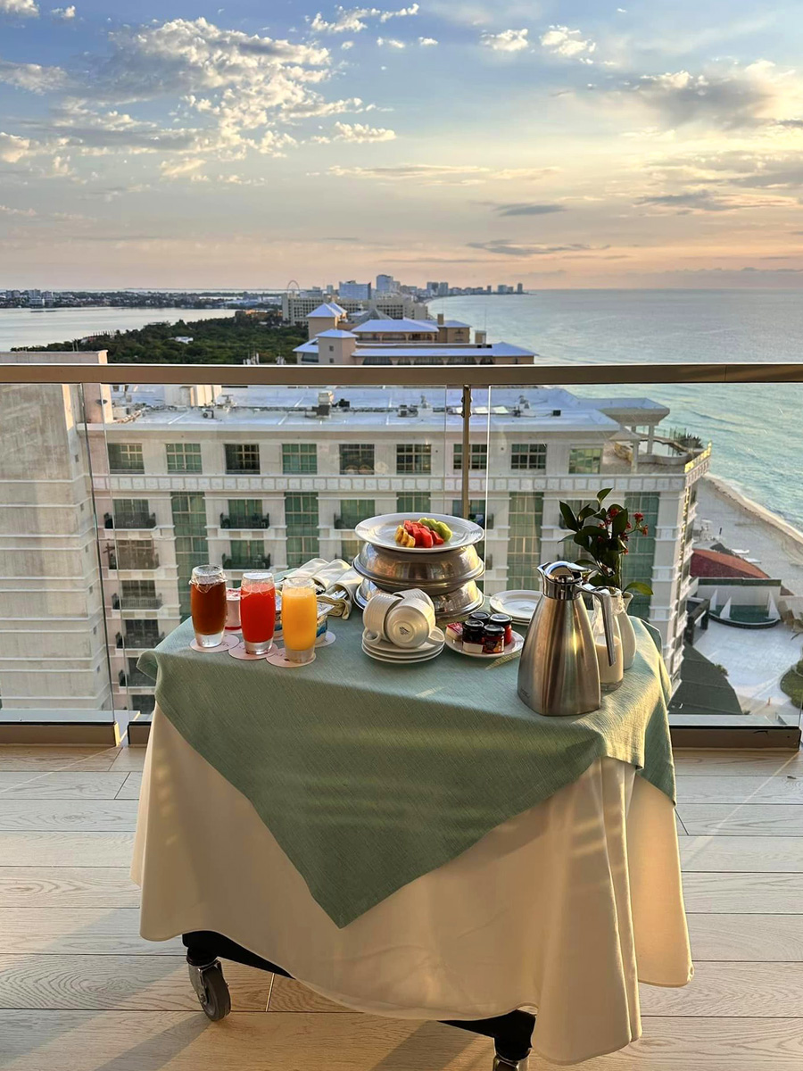 월요일의 하루 종일 '릴렉스'는 20층의 우리 방으로 배달된 룸서비스 아침을 발코니에서 먹으며 카리브해의 일출을 보는 것으로 시작했다. 그리고는 다시 풀장에서 모히또, 점심, 바닷가에서 모히또, 저녁, 또 모히또, 공연 관람 등등...^^