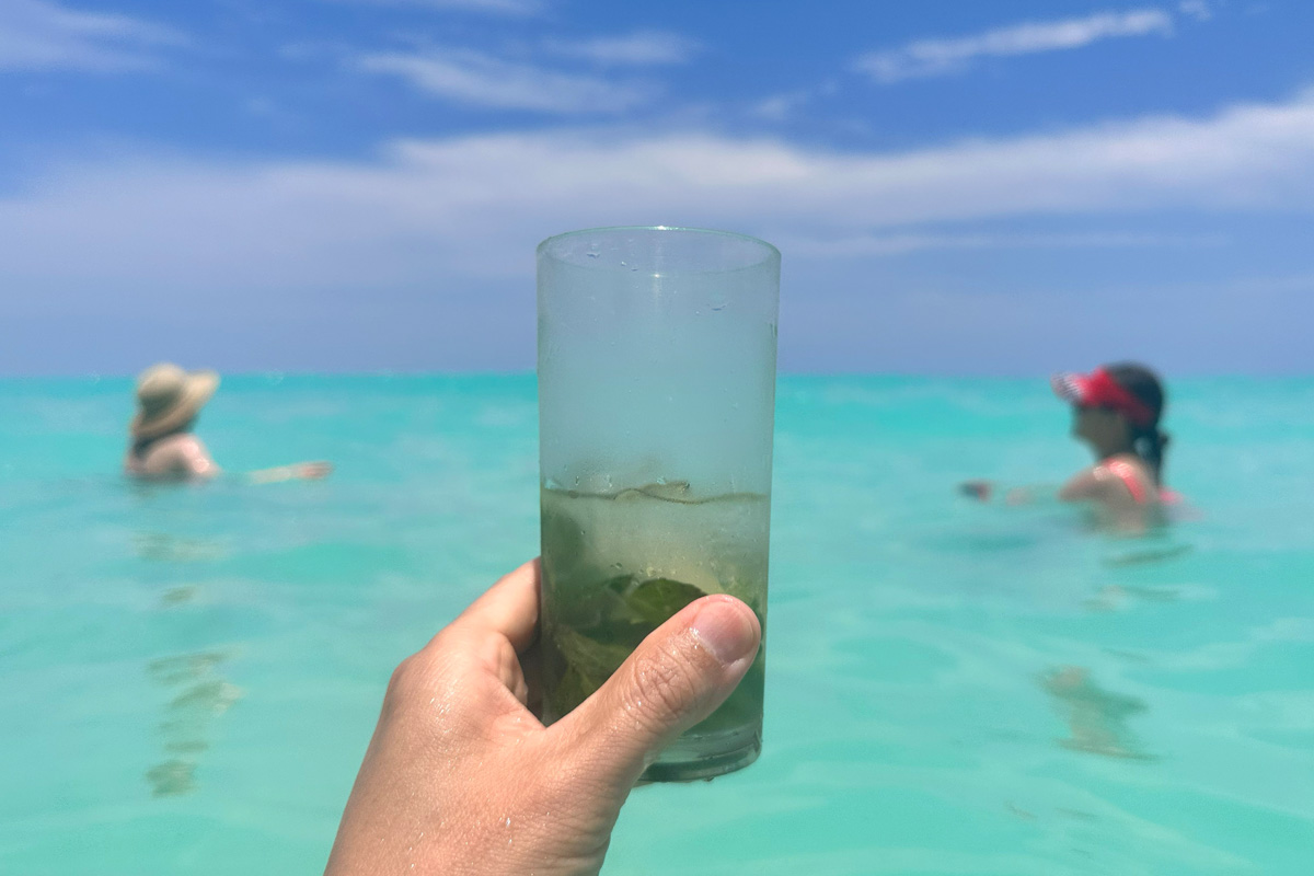 풀바(pool bar)에서 받은 모히토 한 잔을 들고 백사장으로 내려와서, 환상적인 바다색의 카리브해(Caribbean Sea)에 몸을 담그고 반쯤 마신 이 잔을 찍을 때... 위기주부는 멕시코 칸쿤(Cancun) 여행기가 어떻게 시작될 지 이미 머리 속에 그려지고 있었다~