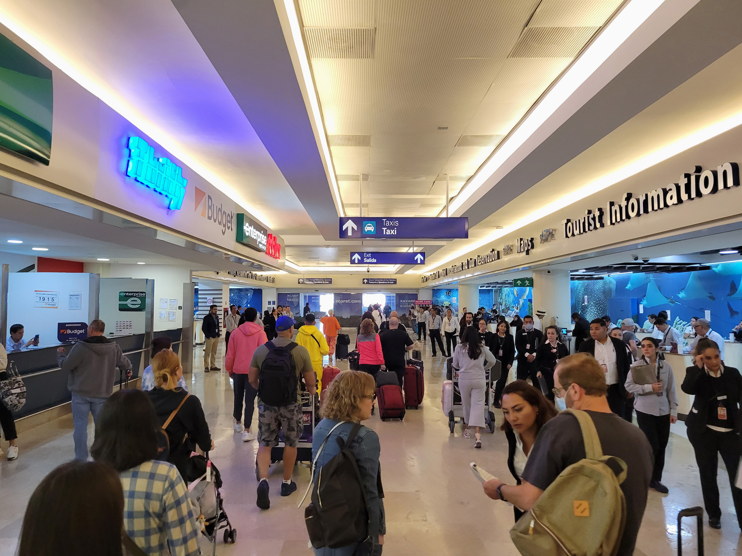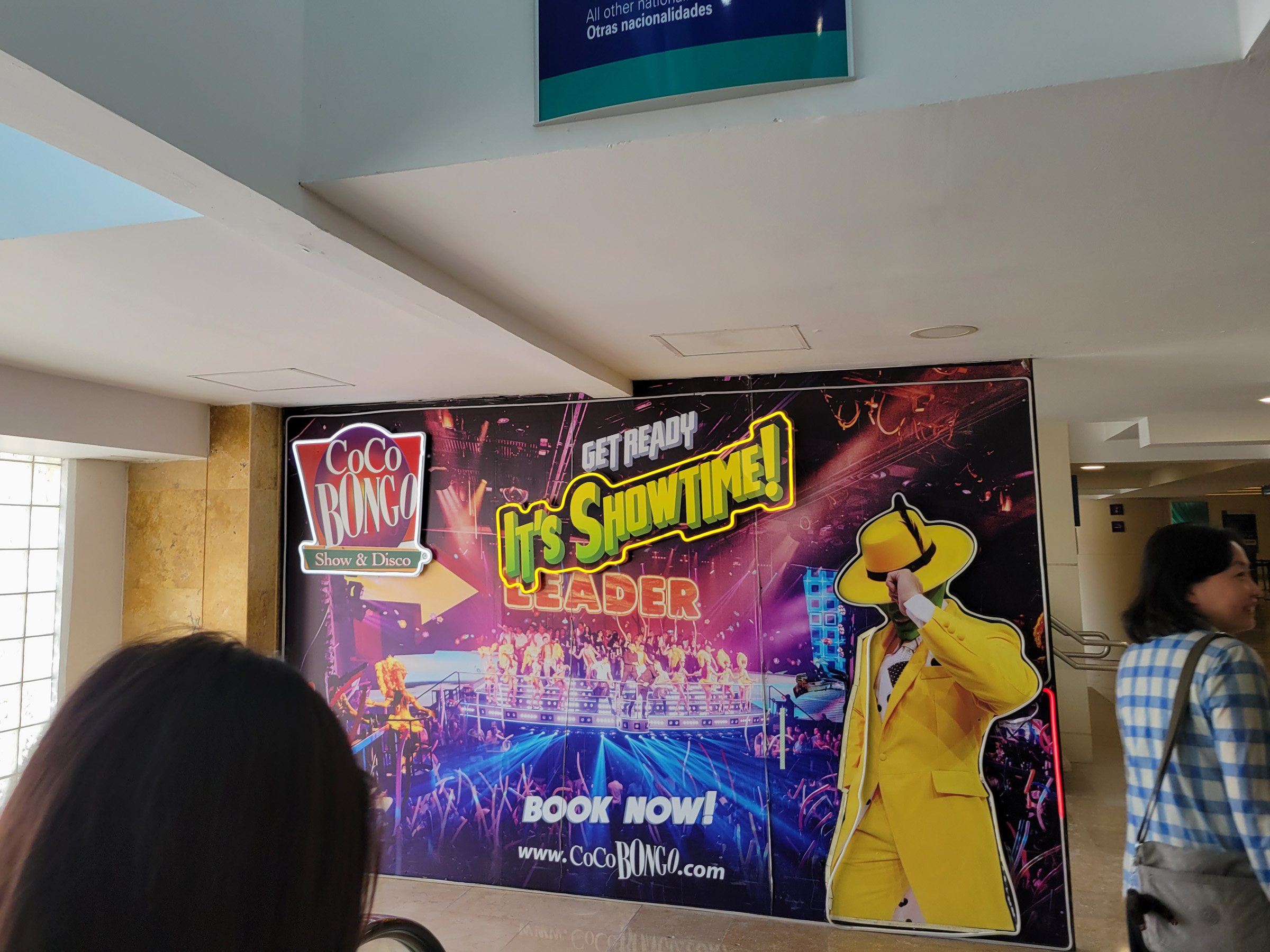 비행기에서 내려 "Welcome to Mexico(또는 Cancun)" 사인이 나오면 찍으려고 했는데, 입국심사장 직전에 우리를 제일 먼저 반겨준 것은 유명한 코코봉고(Coco Bongo)의 마스코트격인 영화 <마스크>의 노란 양복을 입은 주인공이었다. (실제 짐 캐리 주연의 그 영화에서 나온 나이트클럽의 이름이 코코봉고!)