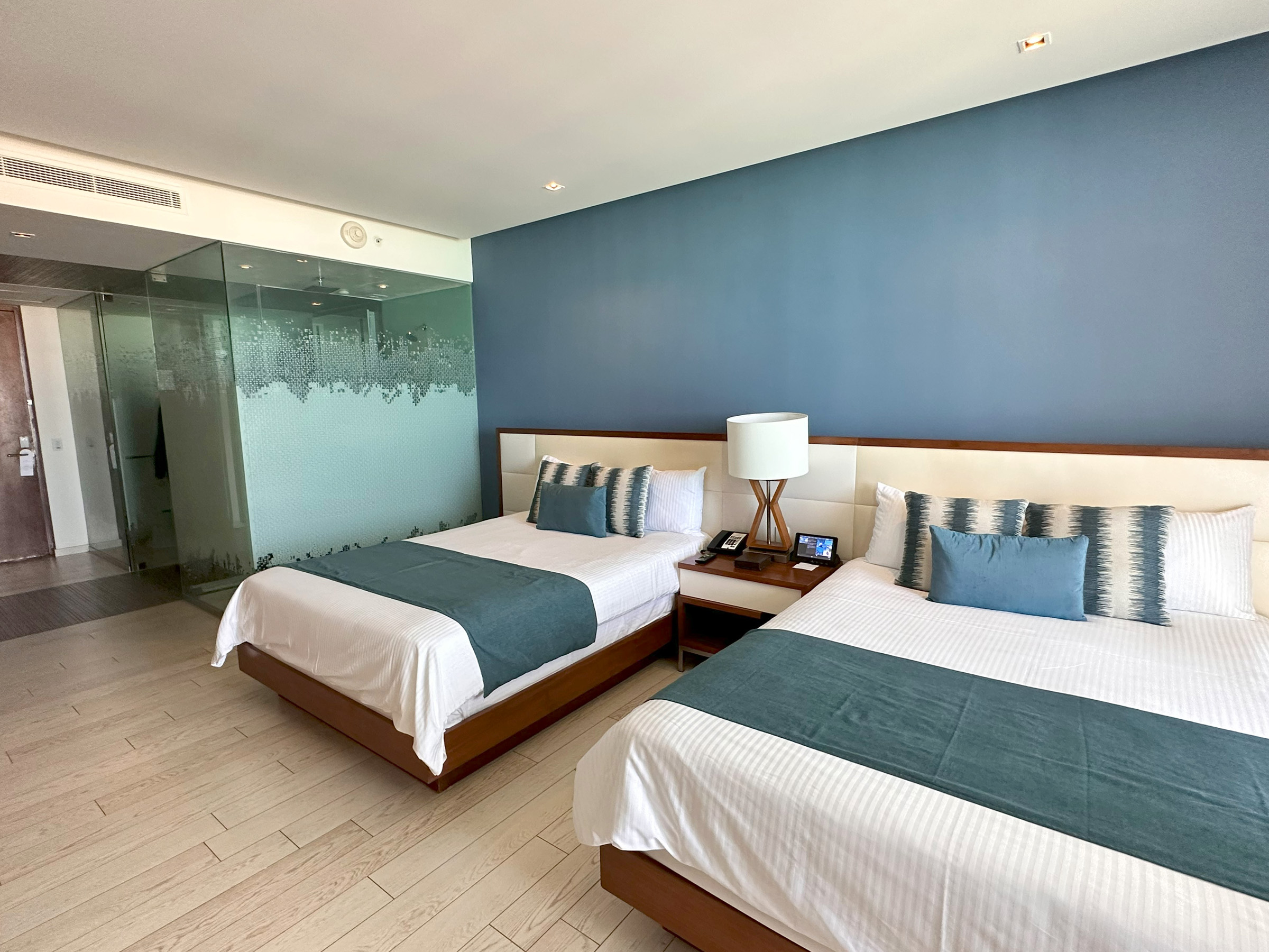 객실도 푸른빛의 아주 시원하고 깔끔한 인테리어가 마음에 들었는데, 성인전용이라 그런지 화장실과 샤워부스의 벽이 사진처럼 유리로 되어 있었다.