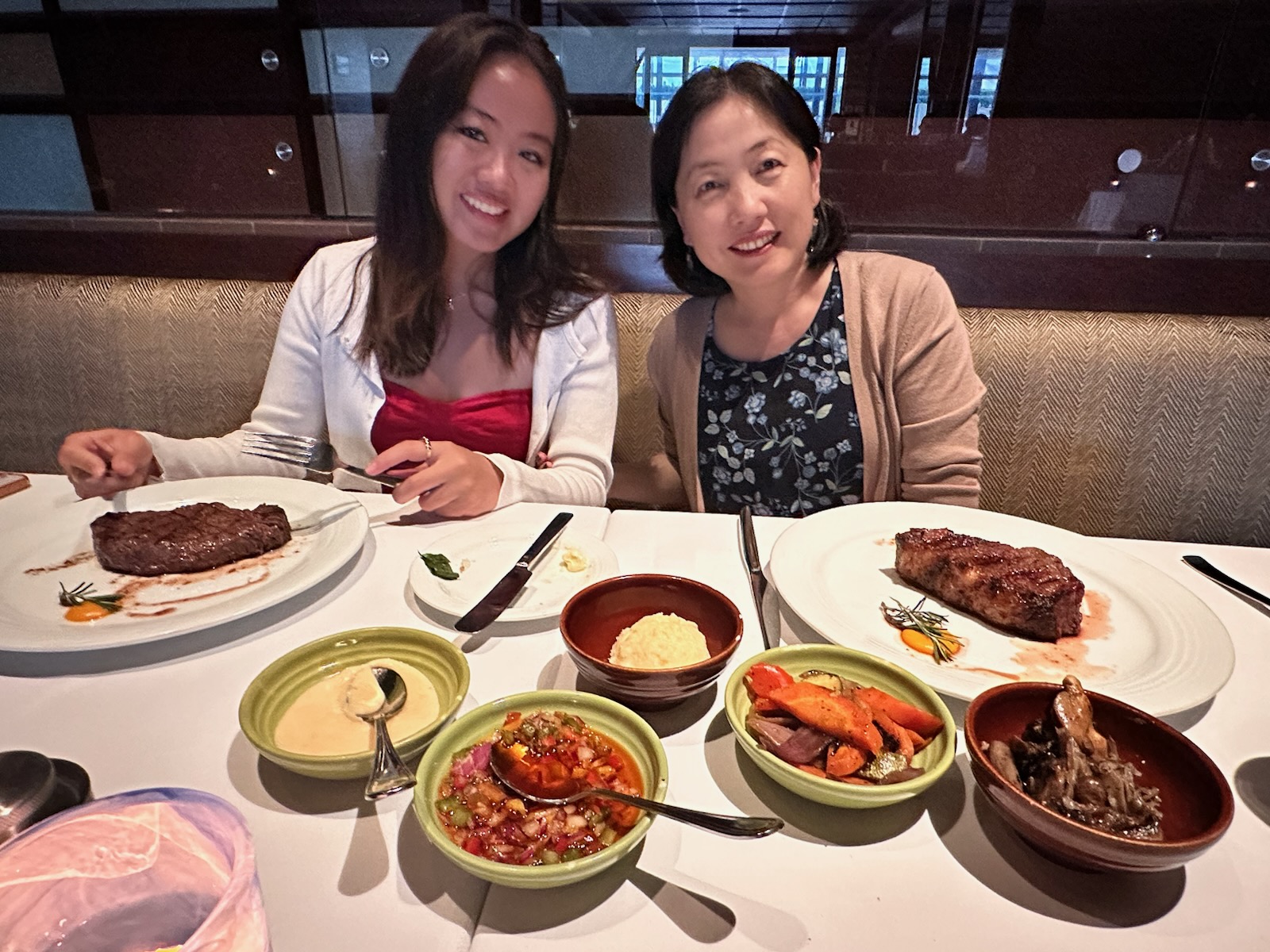 첫날 저녁식사 장소는 이 리조트에서 가장 인기가 있어서 성수기에는 1시간씩 줄을 서서 기다려야 한다는 스테이크 레스토랑이었는데, 문 여는 시간에 맞춰 가서 바로 자리를 잡아서 먹은 저 고기는 좀 질겨서 그렇게 맛있지는 않았던 기억이다. 참고로 저녁 레스토랑들은 드레스코드가 있어서 남자는 반드시 긴 바지를 입어야 했다.