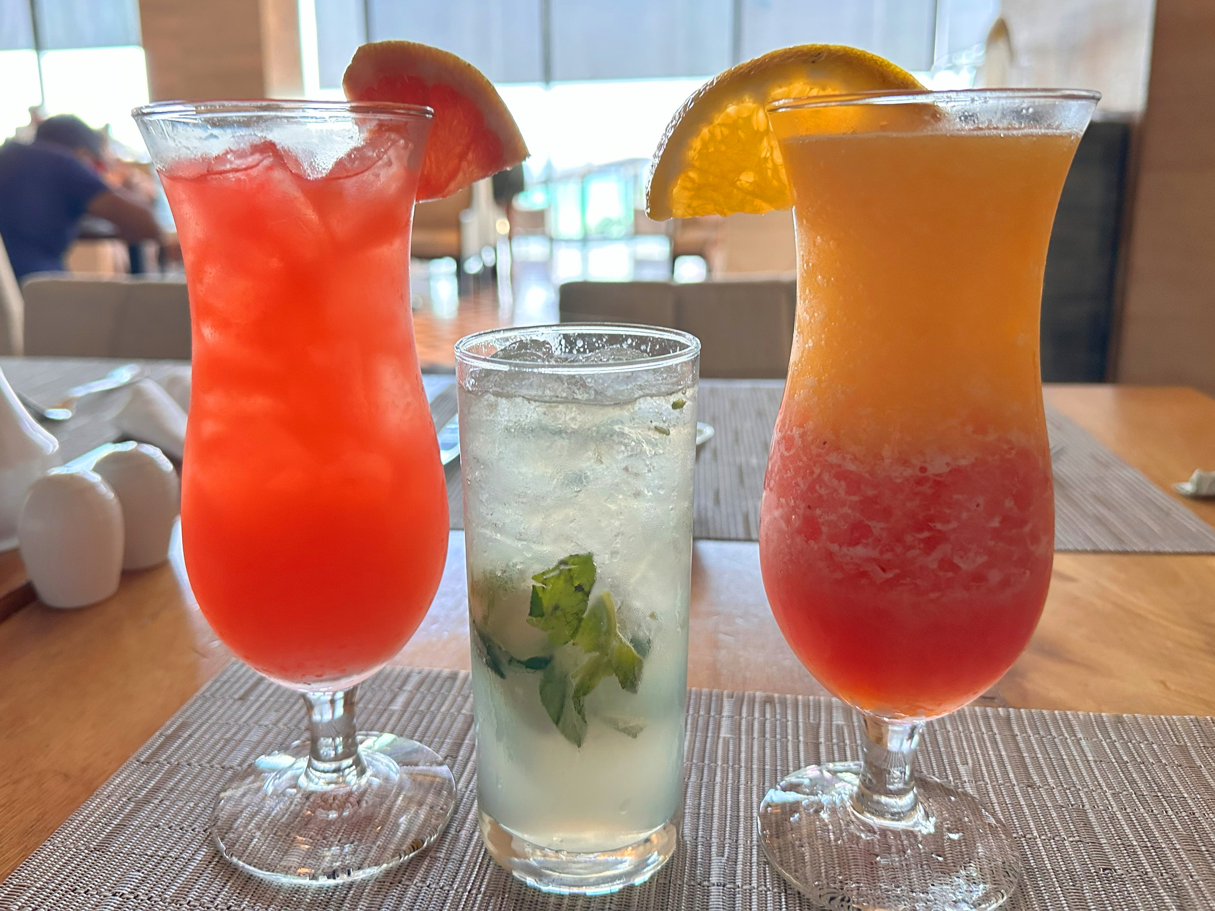 지혜는 가지고 온 수영복이 칸쿤 바다색에 어울리지 않는다고, 호텔 매장에서 새 수영복도 바로 구입을 했다. 그리고 시간이 남아 메뉴만 구경하러 들어간 점심 뷔페식당에서 또 이 칵테일들과 함께 '점심 2차'도 간단히 먹었다.