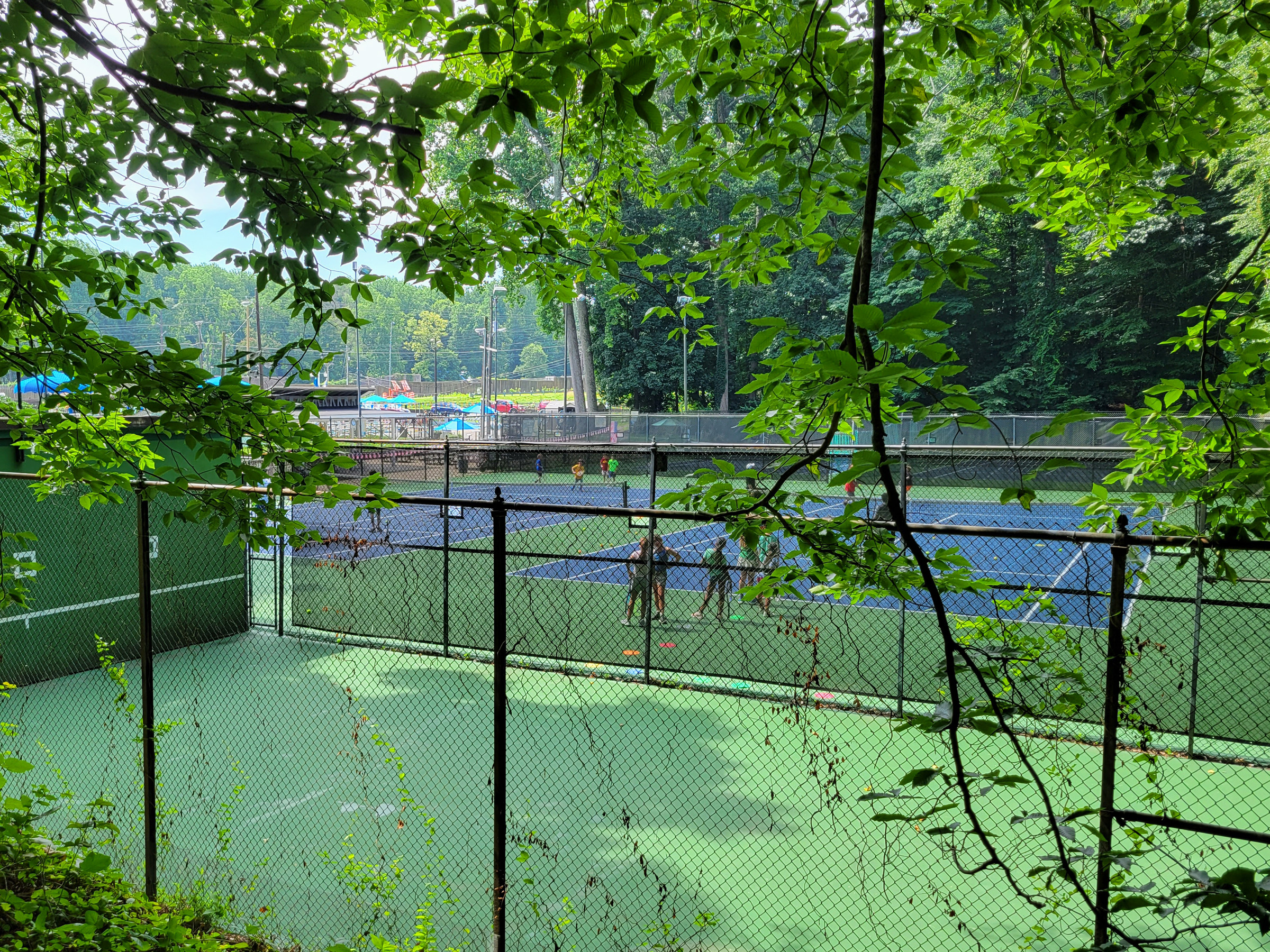 강에서 멀어지는 남쪽으로 꺽으면 길은 다시 넓어지고, 잠시 후에 이렇게 방학을 맞아서 아이들이 테니스를 배우고 있는 모습을 볼 수 있었다. 코트 너머로 수영장도 있는 이 곳은 495번 고속도로 바로 옆의 자투리 땅에 만들어진 Langley Swim and Tennis Club이다.