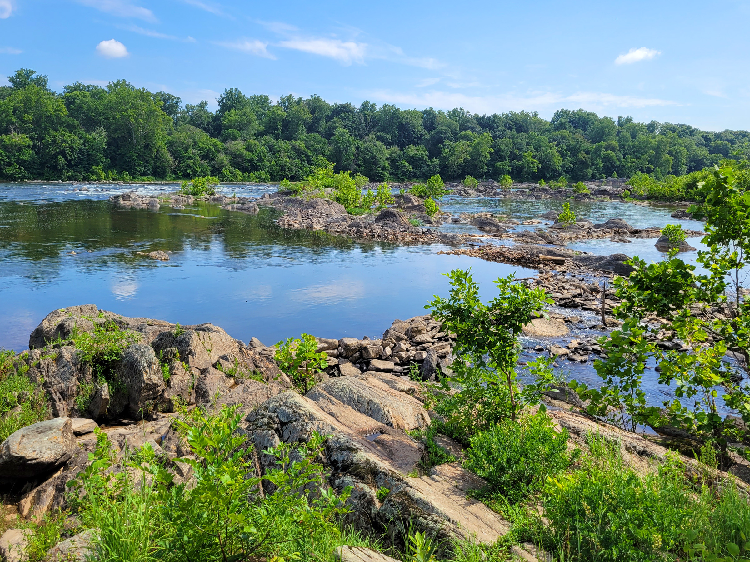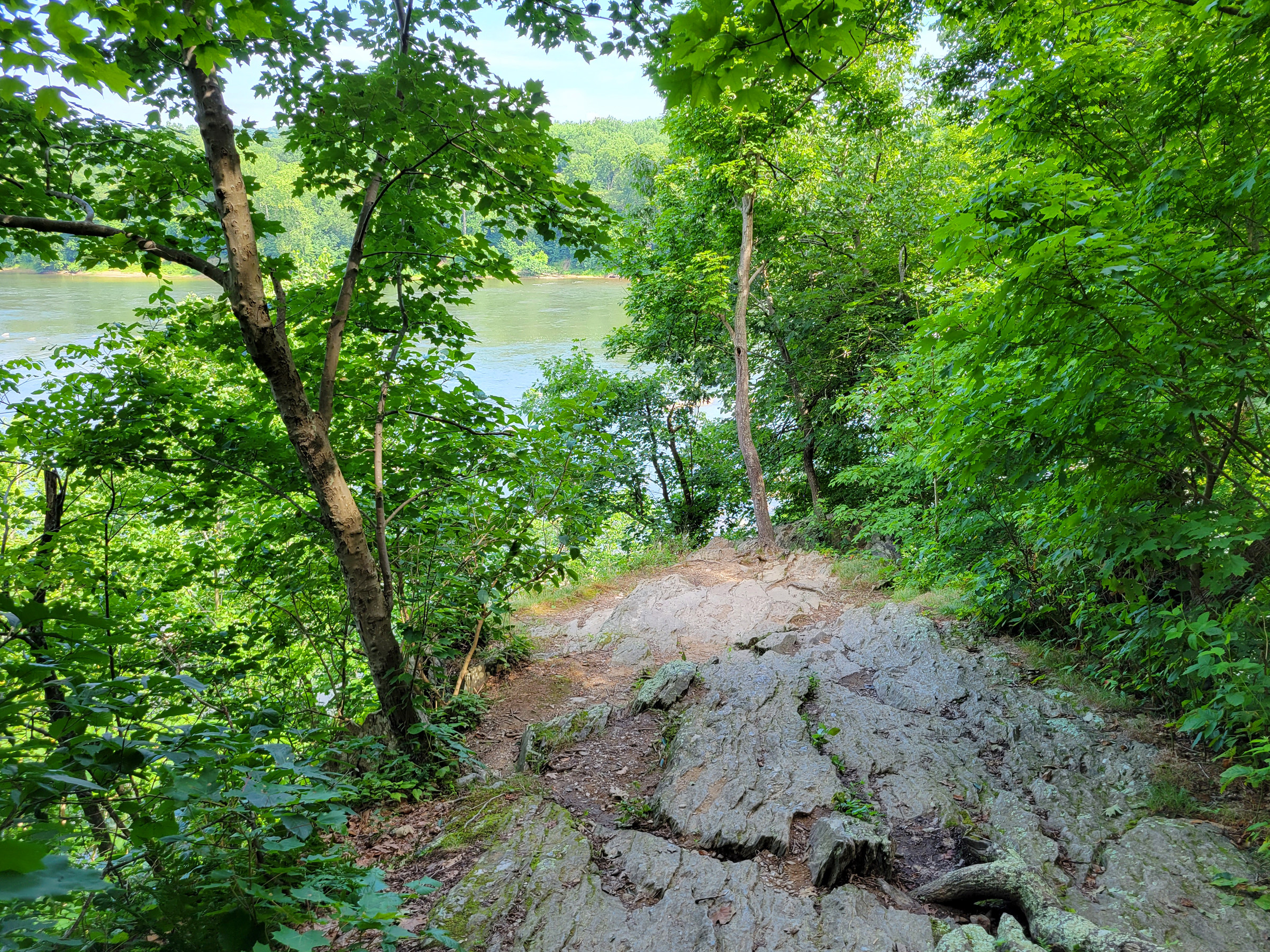 강가를 따라 하류쪽으로 좀 걸어서, 이번에는 포토맥 강이 만드는 폭포(?)를 볼 수 있다는 Stubblefield Falls Overlook에 도착했는데, 무성한 나뭇잎들 때문에 여기 전망대에서는 잔잔한 강물밖에는 보이지 않았다. 그래서 사람들이 급경사를 따라 강으로 내려간 흔적을 쫓아서 가까이 가보았는데...