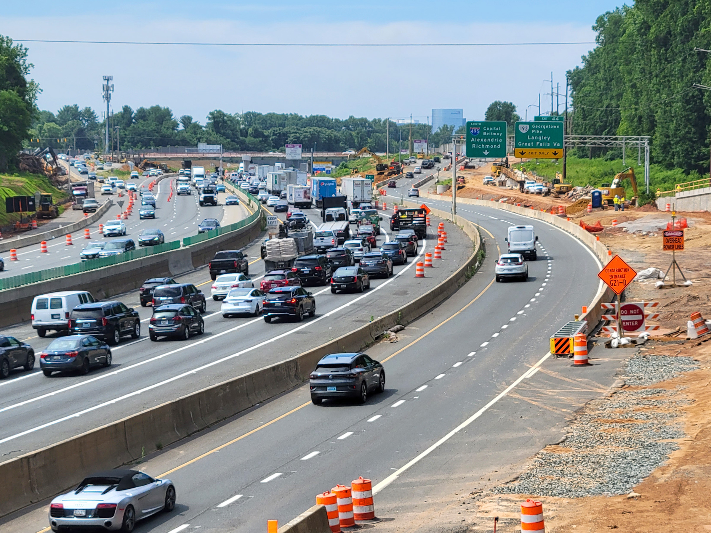 잠시 트레일을 벗어나 고가차도에 올라가 확장공사를 하고 있는 '캐피탈 벨트웨이(Capital Beltway)'를 내려다 봤다. 예전에는 대륙의 서쪽 끝에 있는 LA의 405번 고속도로를 내려다 보며 하이킹을 했었는데 (포스팅을 보시려면 클릭), 이제는 동쪽 끝 워싱턴의 495번을 또 동네 하이킹에서 만나는 운명이라니...ㅎㅎ