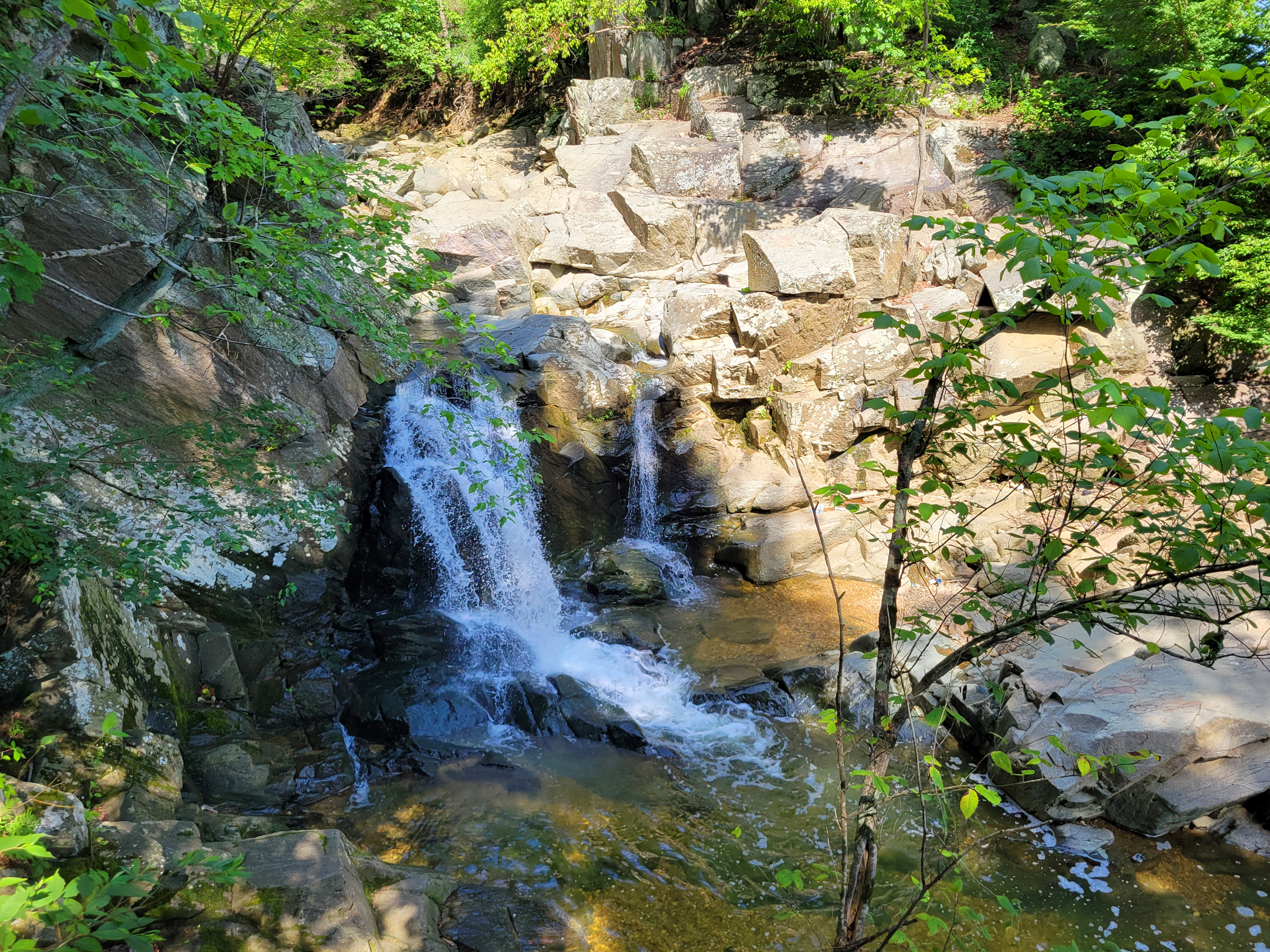 돌아서서 다시 계단을 내려와, 점점 커지는 물소리를 찾아서 북쪽으로 내리막을 걸으면, 나름 이 동네에서는 유명하다는 스코츠런 폭포(Scott's Run Falls)를 먼저 위에서 내려다 볼 수 있다.