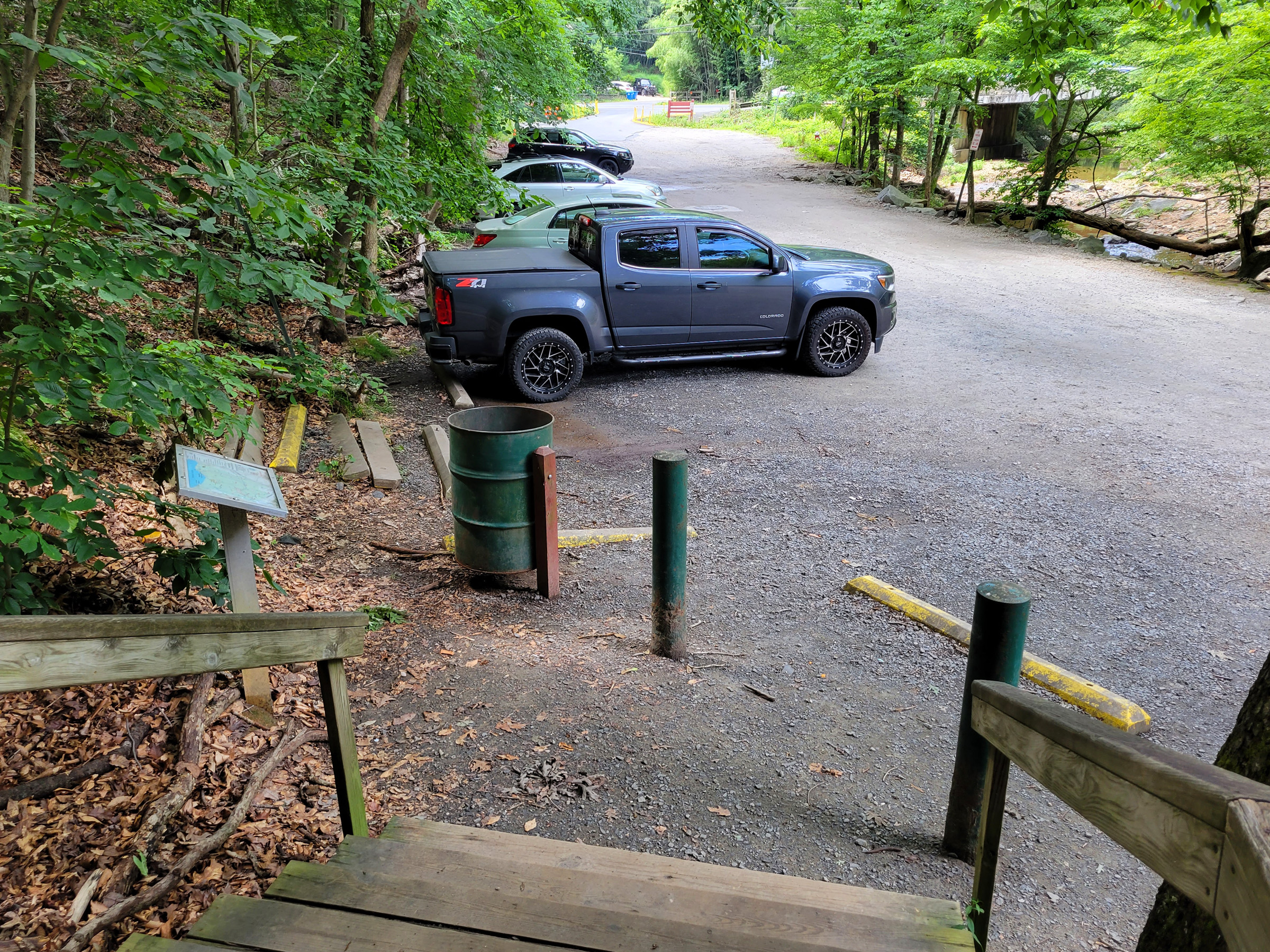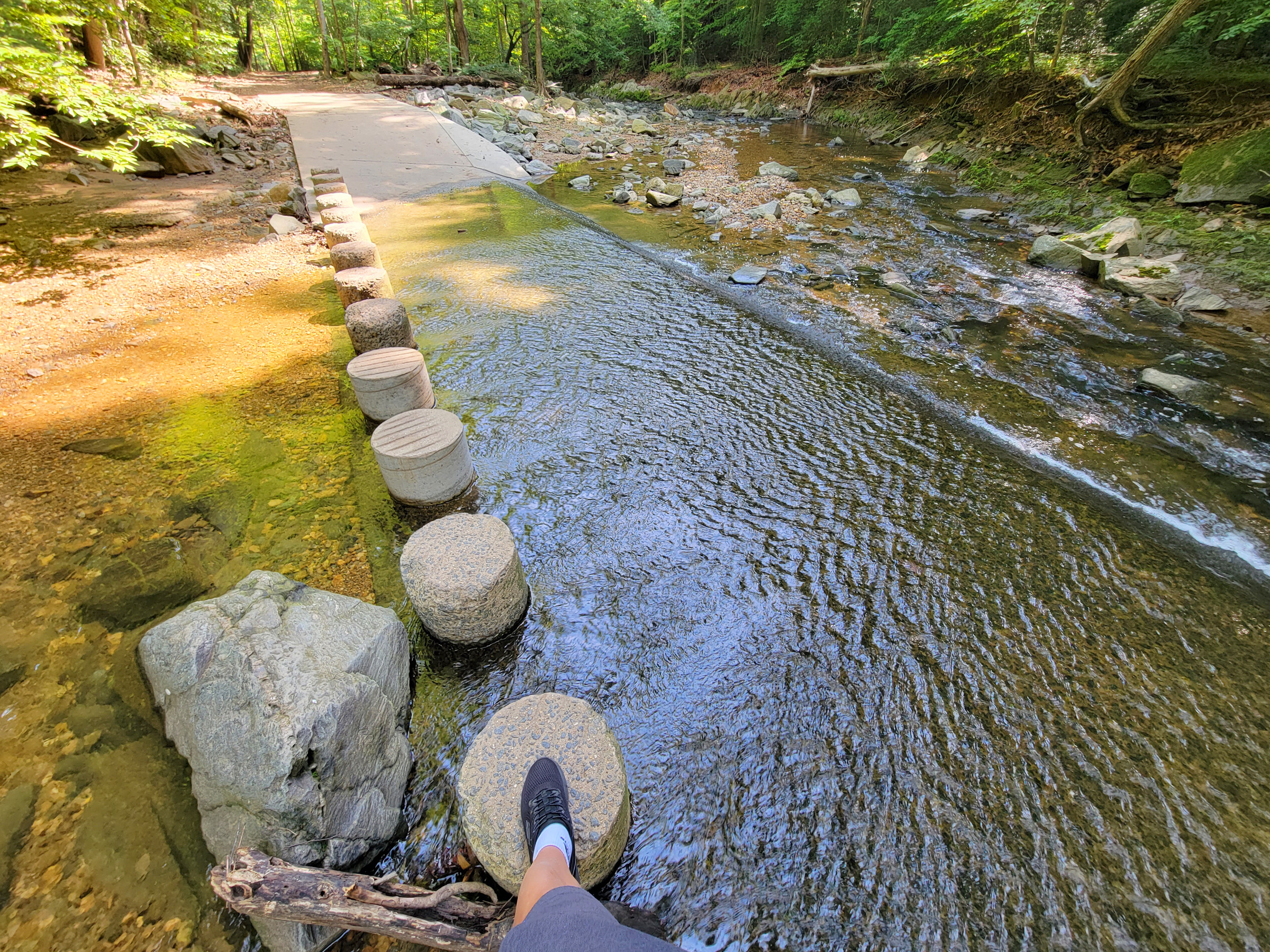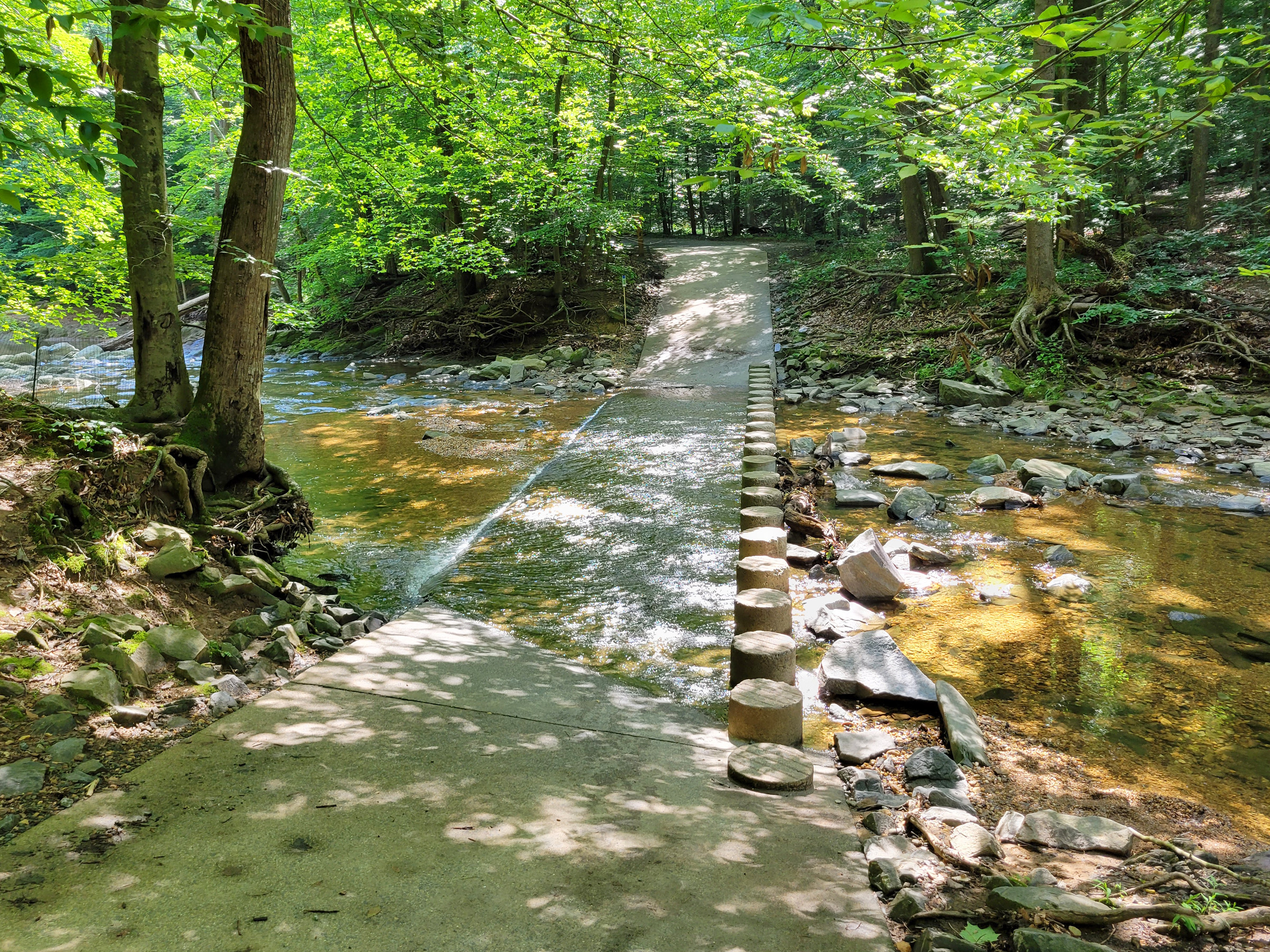 트레일맵에 물을 건너는 표시가 있어서 다리가 있는 줄 알았는데, 그냥 이렇게 콘크리트로 포장을 해놓은 길이 개울과 교차하는 것이었다.