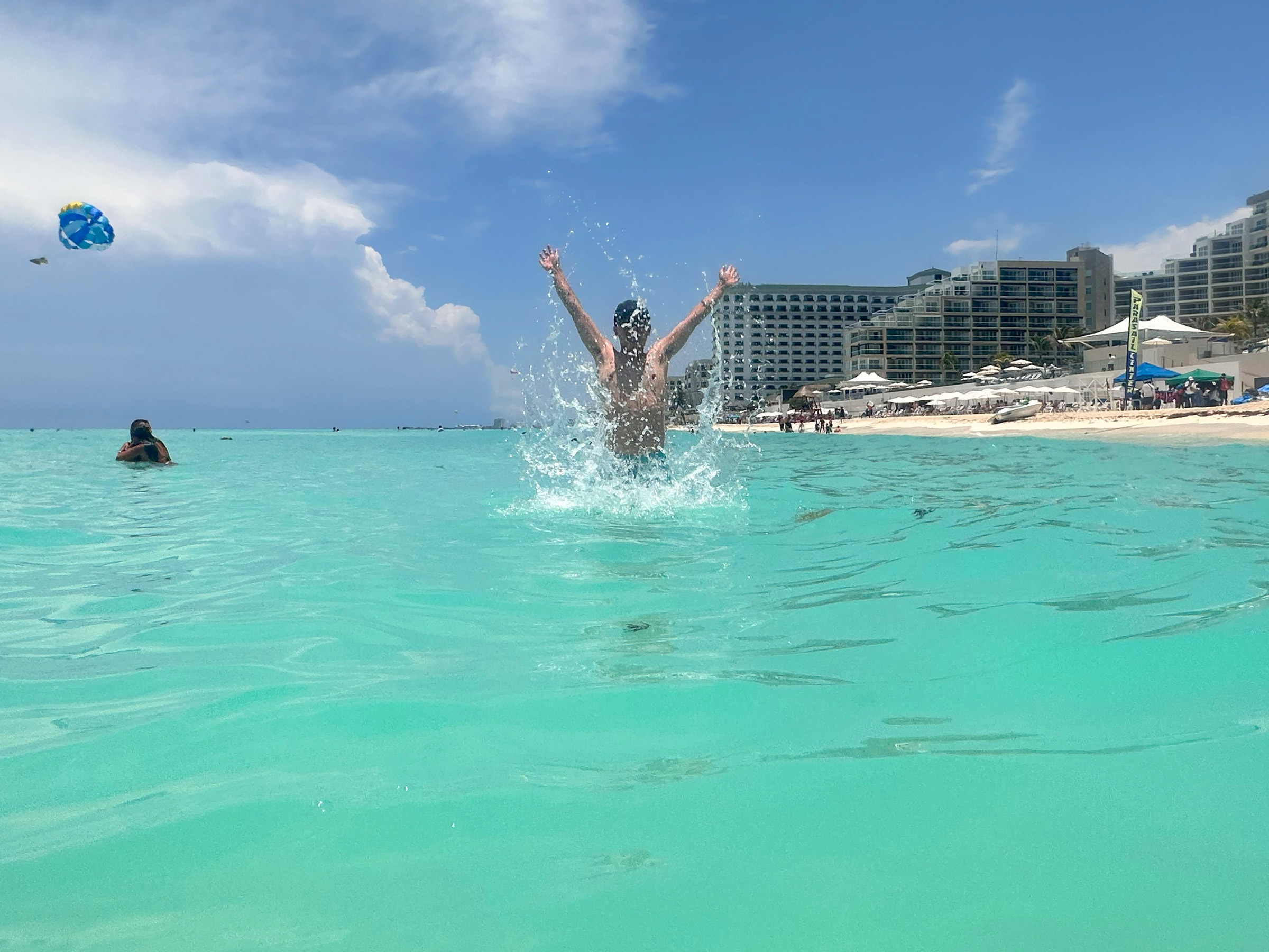 칸쿤은 6월이 우기라서 날씨가 흐리면 물색이 예쁘지 않다는데, 우리가 하루 종일 바닷가 리조트에서 보낸 이 날은 오후까지 날씨가 맑아서 참 다행이었다.