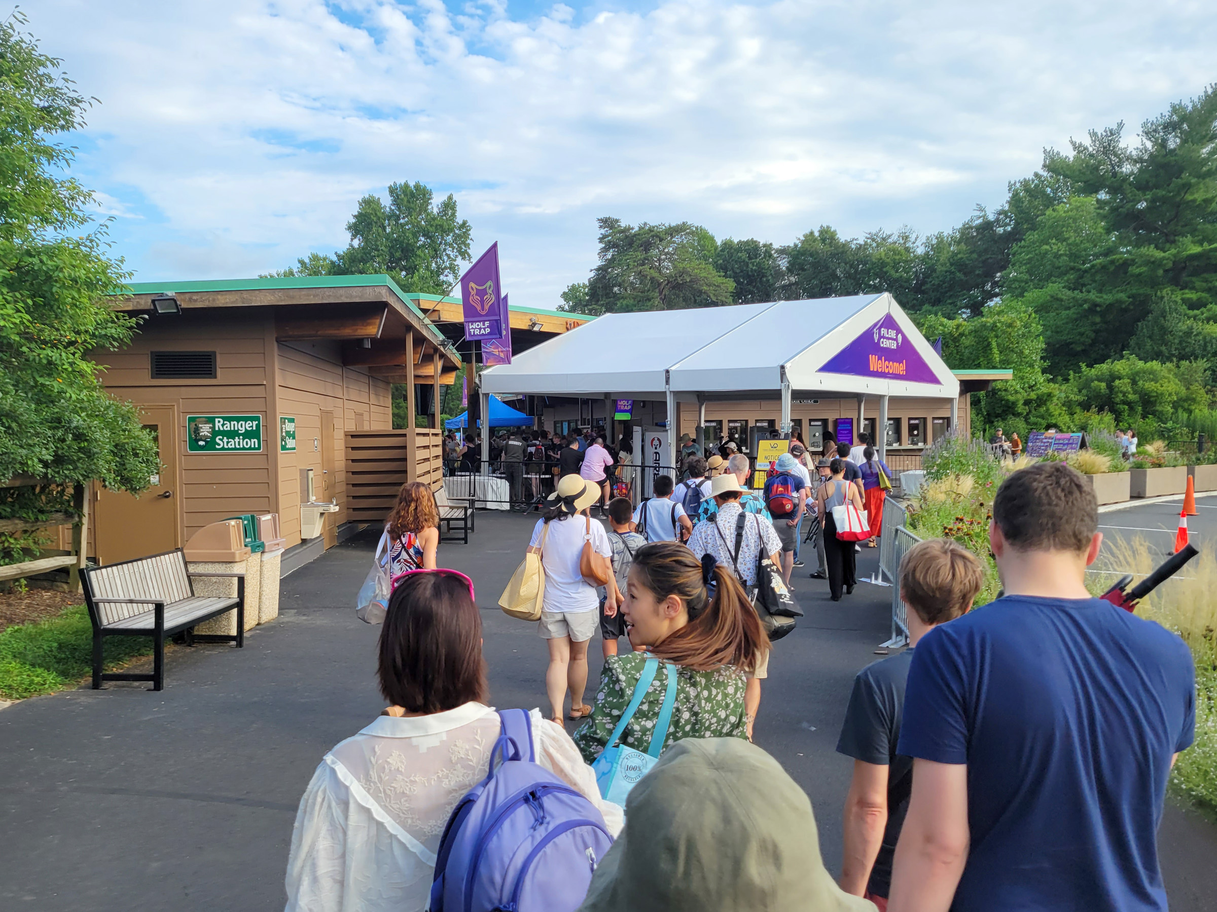 정문 앞의 하얀 천막에서 보안검색을 통과해야 하는데, 홈페이지에는 아이스박스 크기 제한도 있고 아주 꼼꼼하게 검사한다고 겁을 주지만, 그냥 대부분의 사람은 바로바로 통과를 시키고 아주 소수만 선별적으로 검사를 하는 시스템이었다. 그래서 줄이 쭉쭉 빨리 빠지는 바람에 왼편의 레인저 스테이션에서 까만 공원 브로셔를 받는 것을 깜박했다~