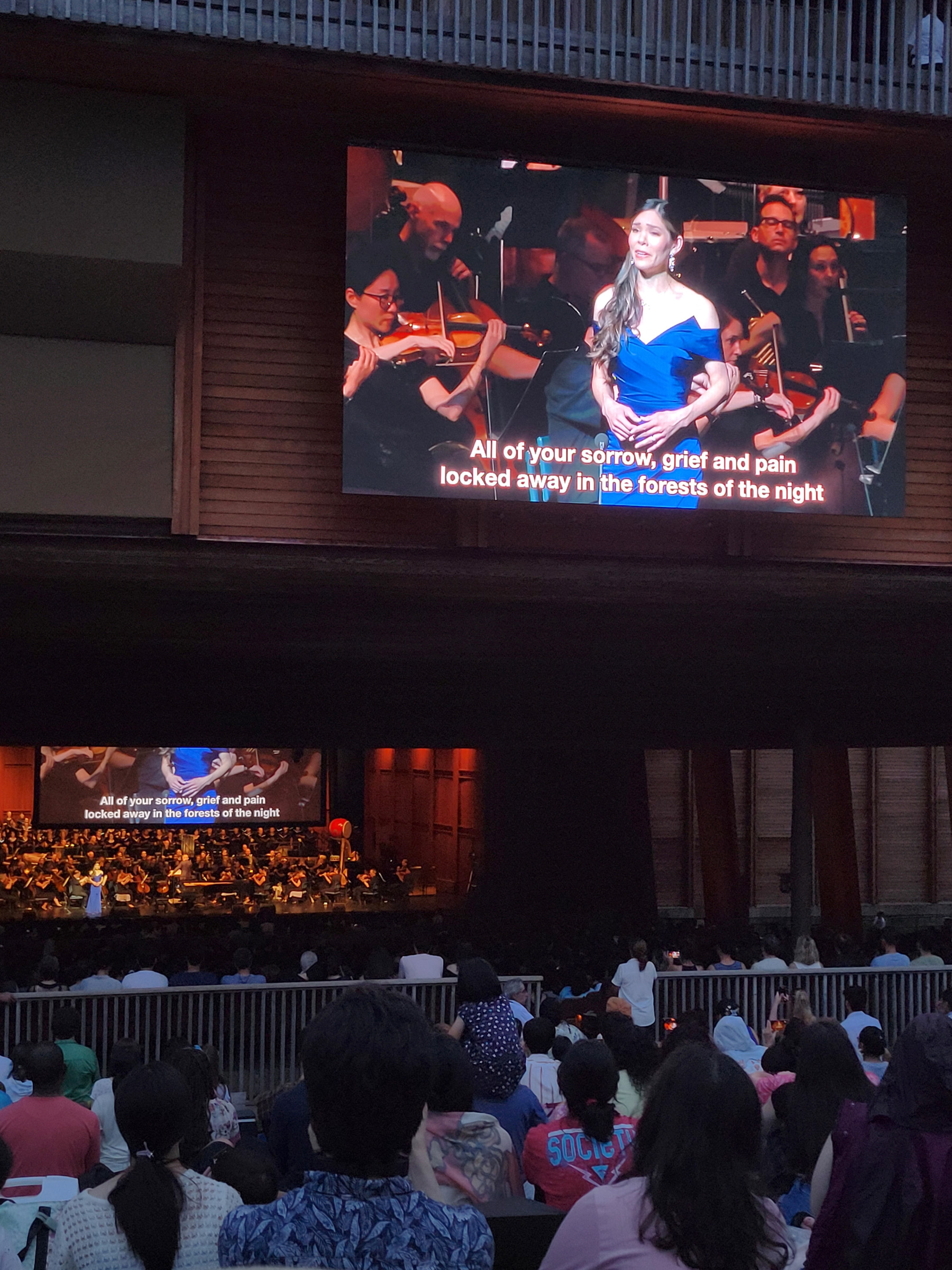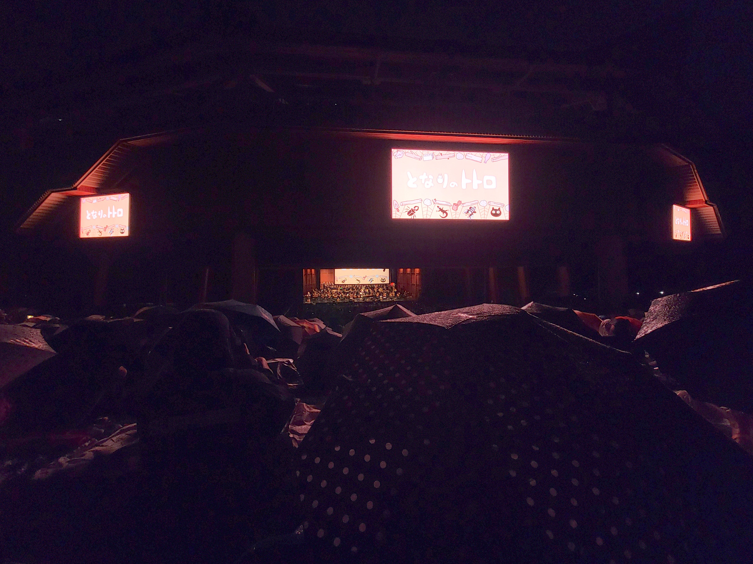 연주회의 마지막 영화인 <이웃집 토토로> My Neighbor Totoro 연주가 시작될 때부터는 결국 비가 억수같이 내리기 시작했지만, 거의 아무도 불평하거나 자리에서 일어나는 사람이 없었다. 오히려 이 빗줄기가 무더운 열기를 식혀 주었을 뿐만 아니라, 특히 잔디밭에 앉은 관객들에게는 공연 전체에서 가장 큰 즐거움(?)과 웃음을 안겨줬는데...