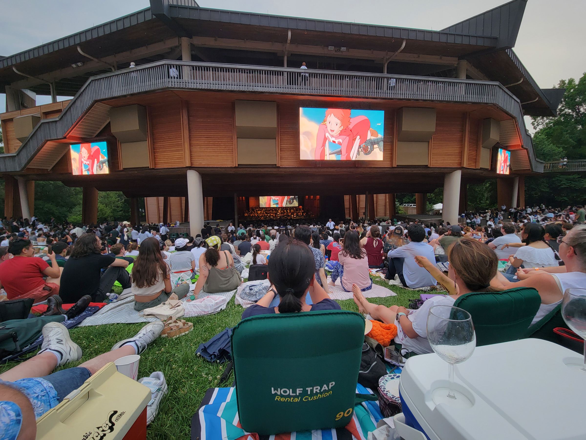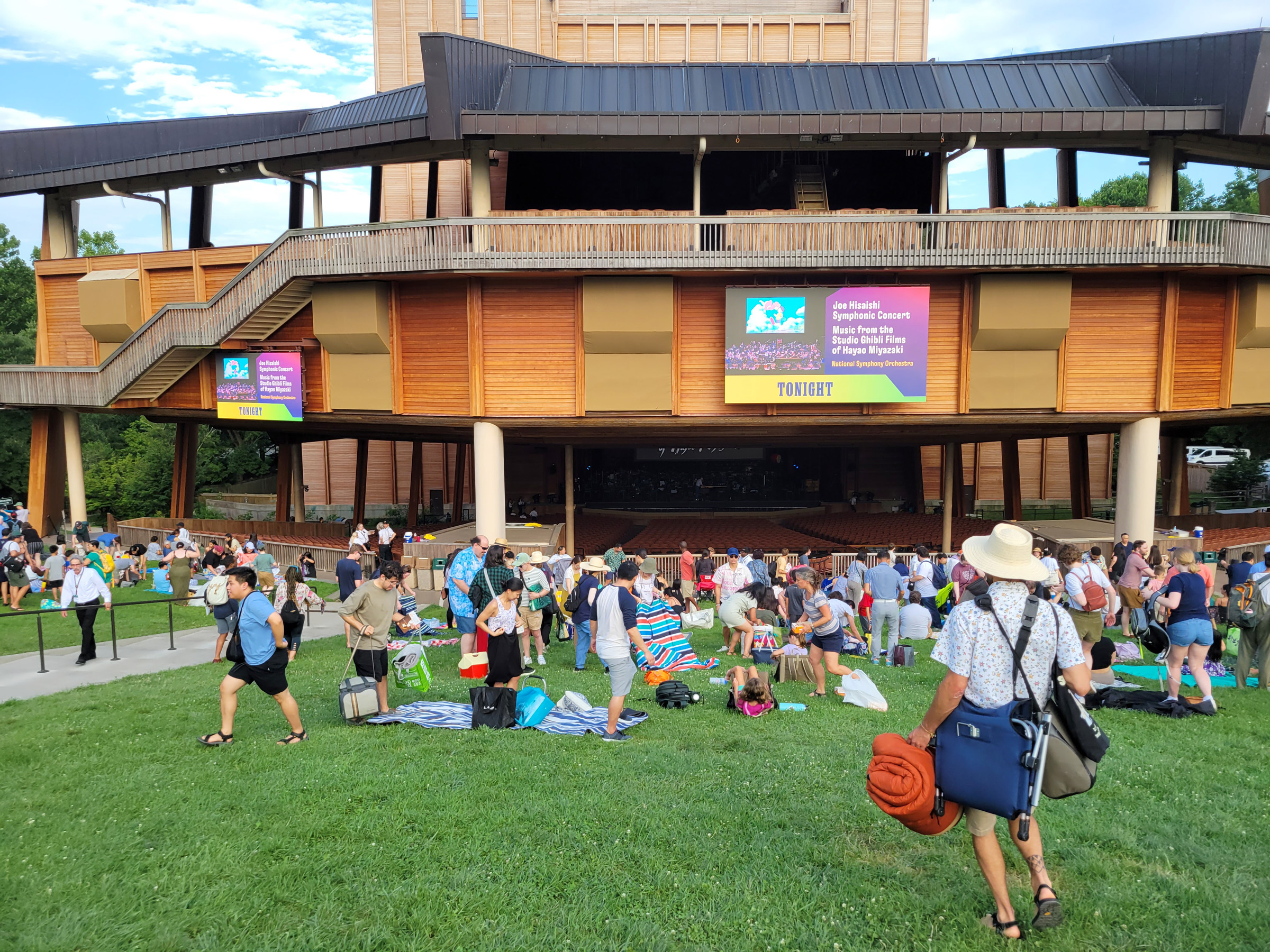 번개와 함께 강한 비가 내리는 야외극장에서 우산을 쓰고 '토토로' 주제가를 들으며 바라보는 스크린에, 바로 그 만화 속의 비 내리는 장면이 나왔던 것이다.^^ 그렇게 '일본의 존 윌리엄스'라 불린다는 조 히사이시(Joe Hisaishi)의 미야자키 하야오 영화음악회는 폭우와 박수갈채 속에 끝이 났는데, 공연장 이름이 울프트랩(Wolf Trap)이라서 그런지 뒤쪽의 젊은 남자들이 늑대 울음소리로 환호를 했던 것 같다.