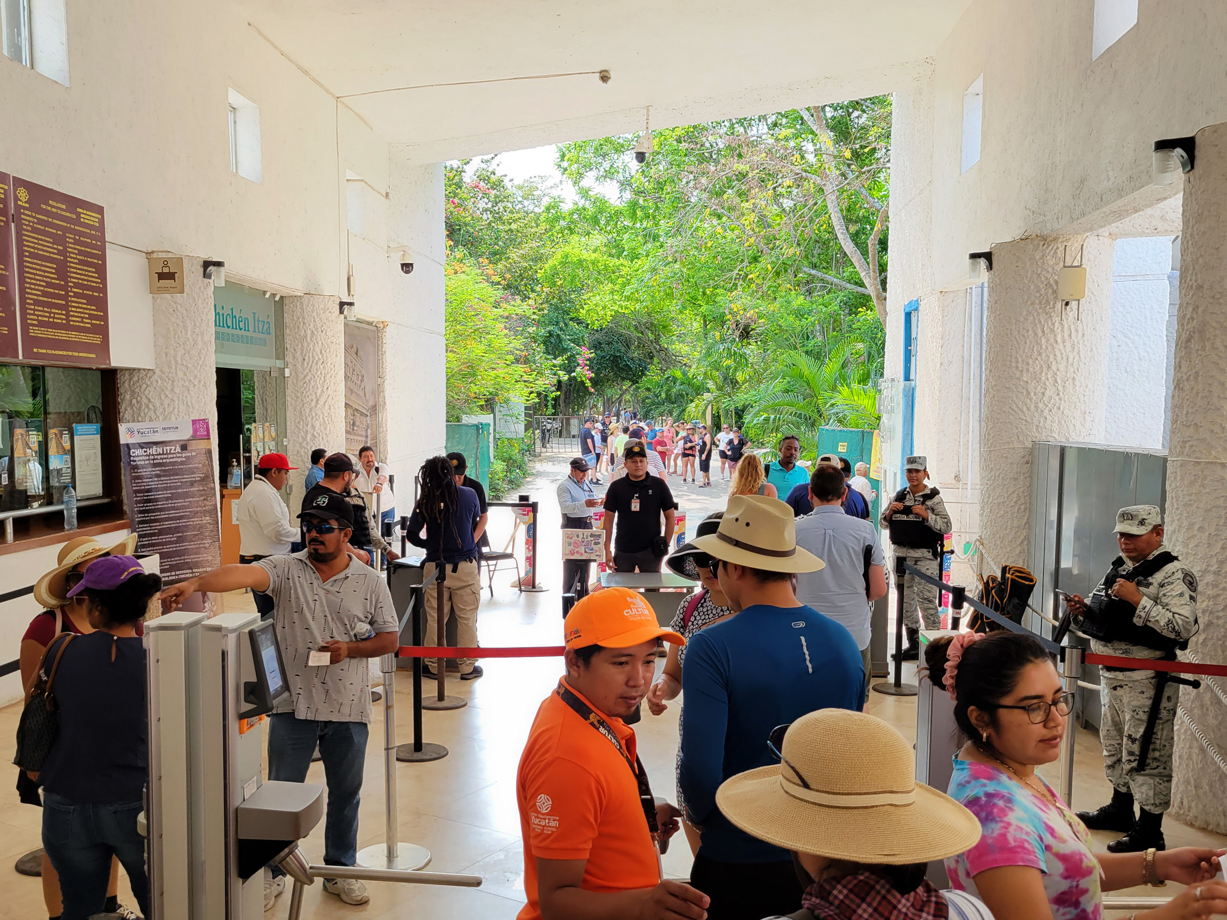 구입한 입장권과 간단한 소지품 검사도 하는 입구에 형식적이지만 군인들도 경비를 서고 있는 것을 보면, 여기 치첸이사 유적지가 멕시코 관광산업의 중요한 수입원임을 알 수 있다.