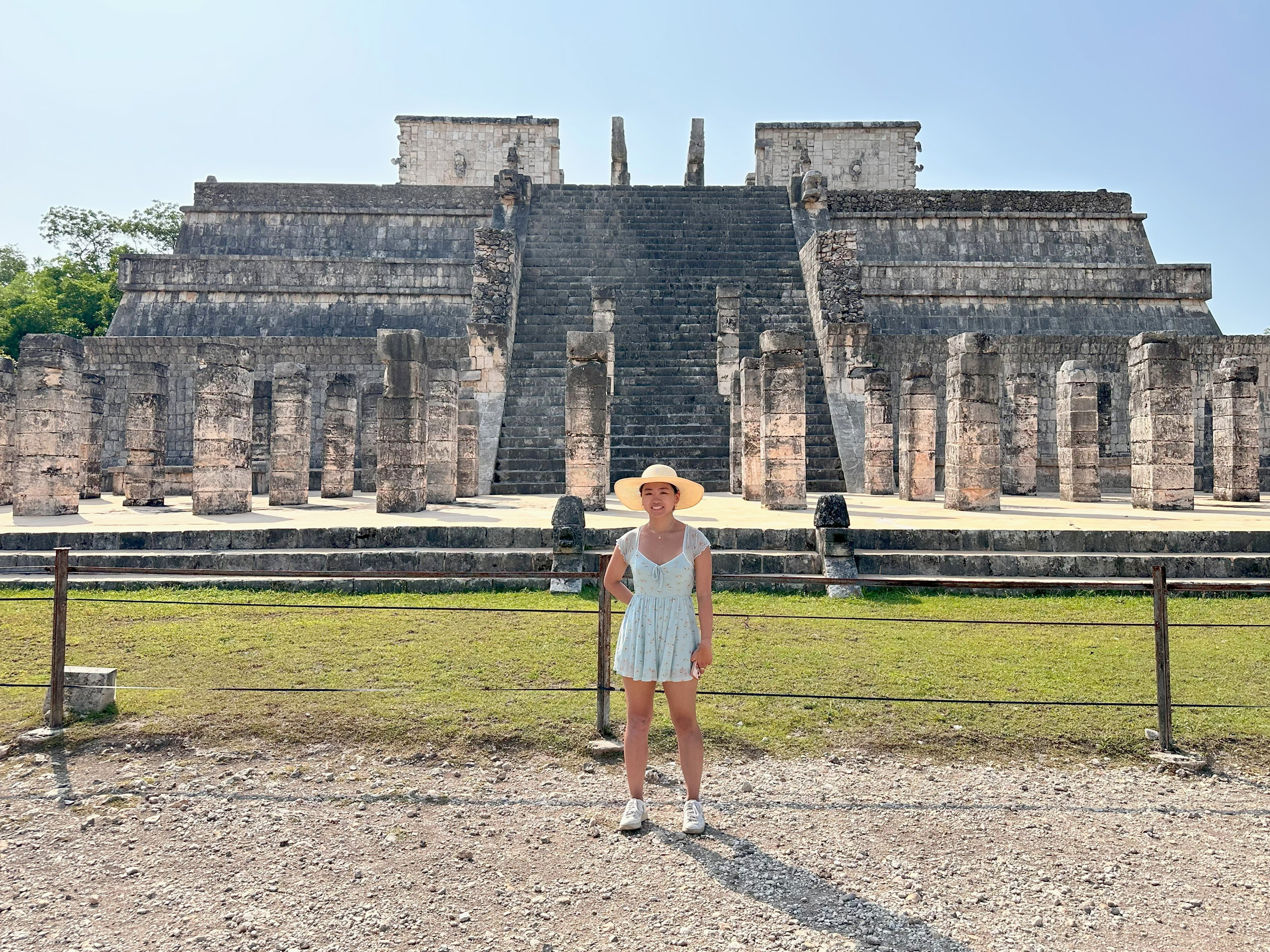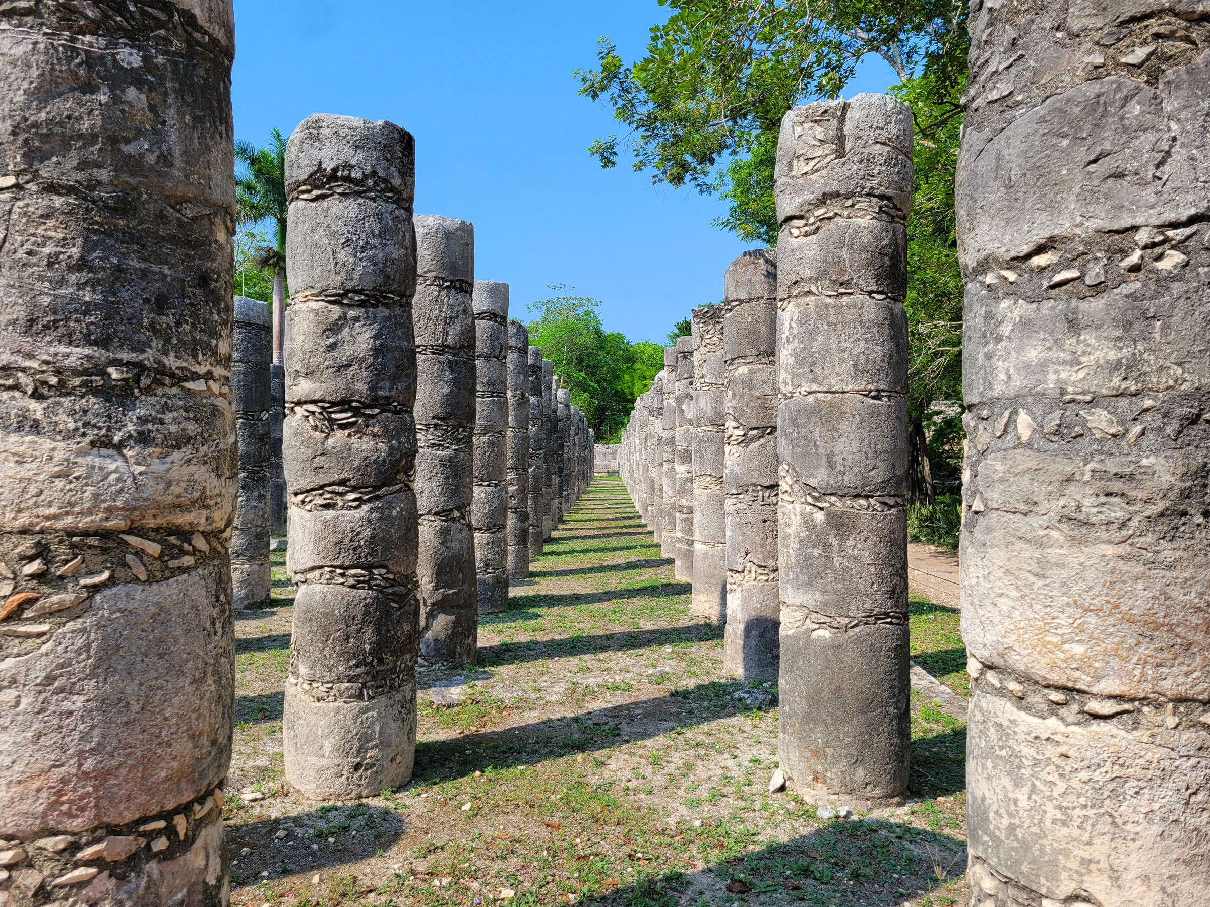 다음 '전사들의 신전(Temple of the Warriors)'은 뒤로 보이는 사각형의 기둥들에 전사의 모습을 새겨 놓았다는데, 접근금지 펜스를 너무 멀찌감치 쳐놓아서 가까이 볼 수 없는게 좀 섭섭했다.