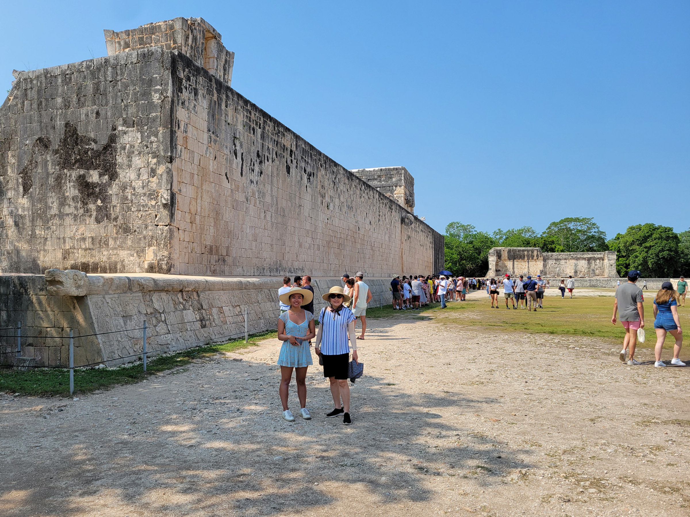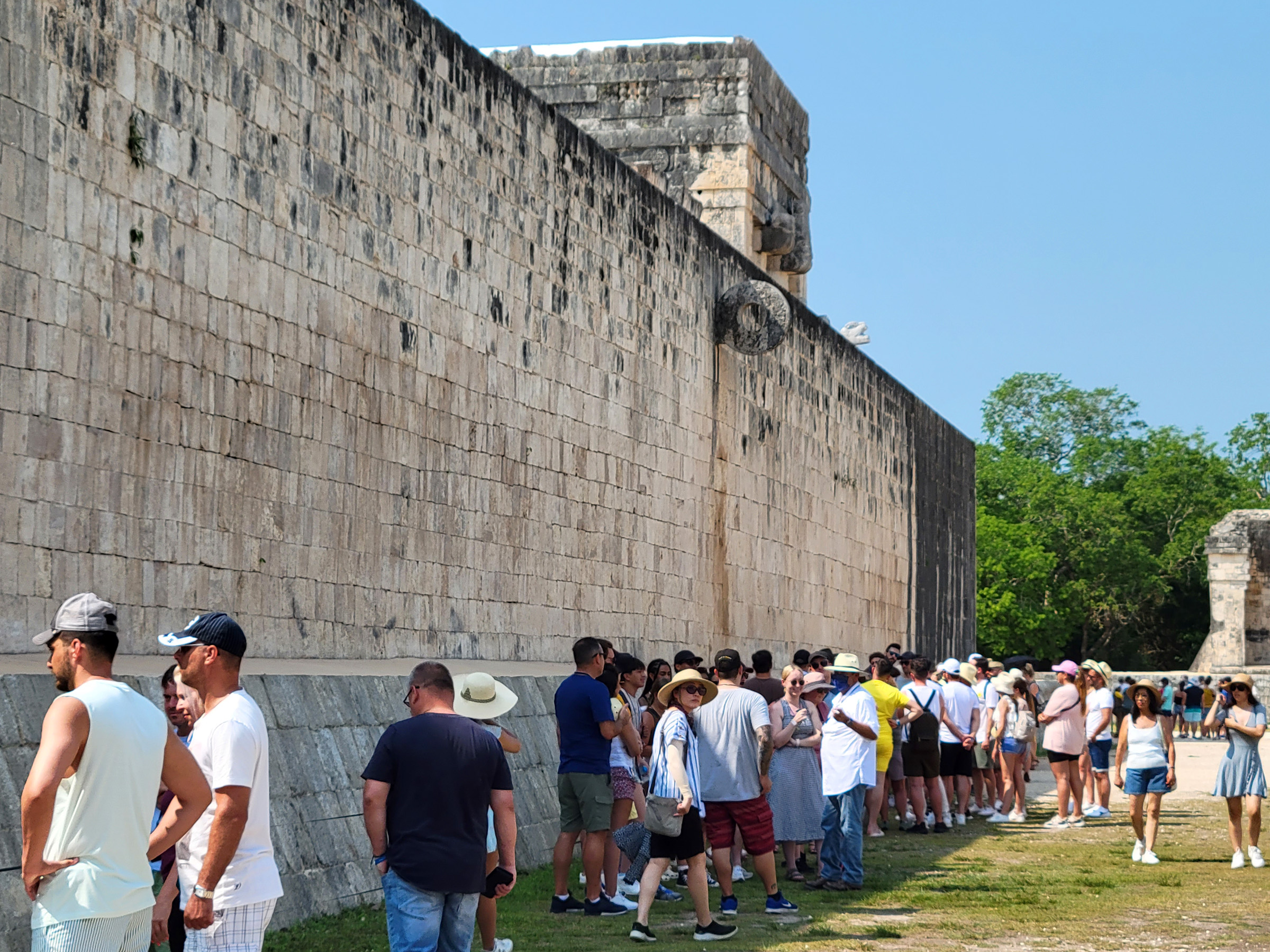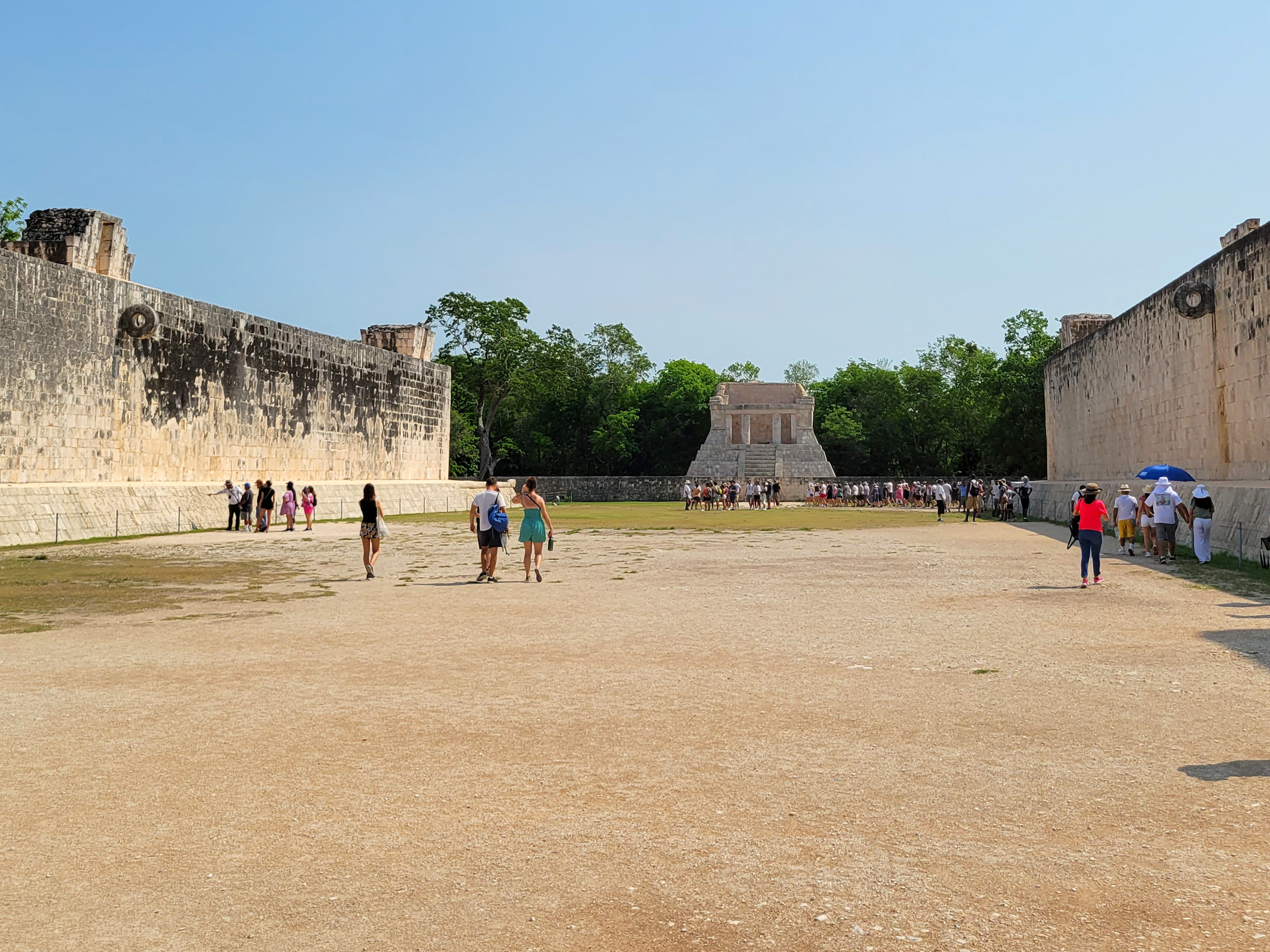 가장 많은 관광객들이 모여있던 '대경기장(Great Ball Court)'의 가운데로 들어왔다. 멀리 마주보고 있는 관람석 사이의 거리가 150m이고, 동그란 작은 구멍의 골대가 가운데 설치된 석벽의 길이만 95m에 높이가 8m나 되는 메소아메리카 문명권에서 가장 크고 잘 보존된 구기 경기장이라 한다.