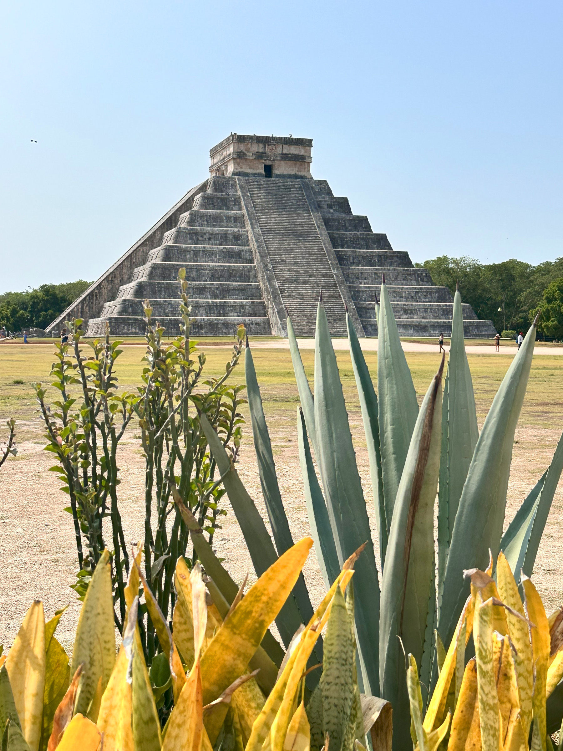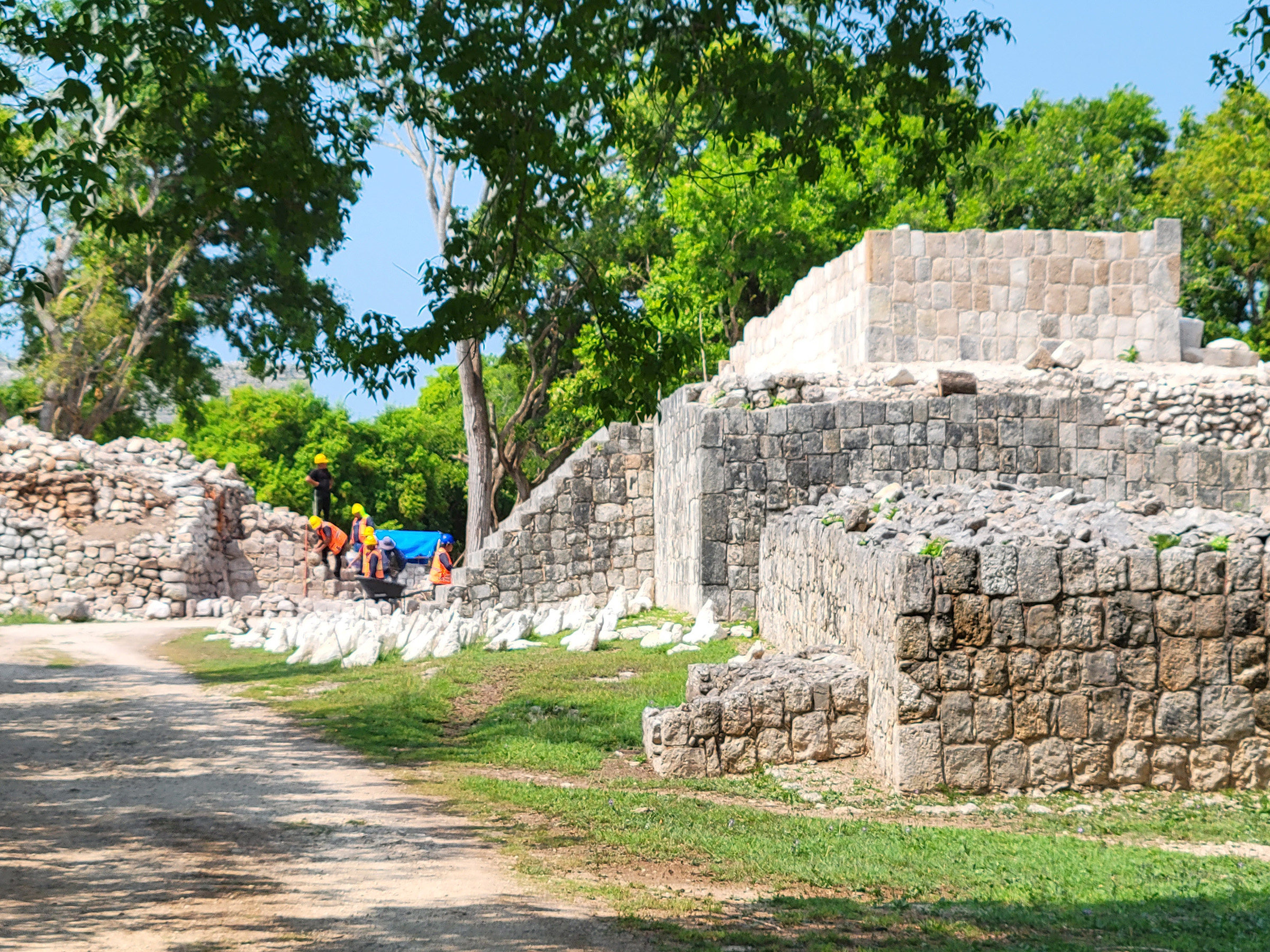 다시 돌아나와서 메인 피라미드를 향해 가는데, 아가베(?) 뒤로 보이는 이쪽 방향의 계단은 완전히 복구가 되지는 않은 모습이었다.