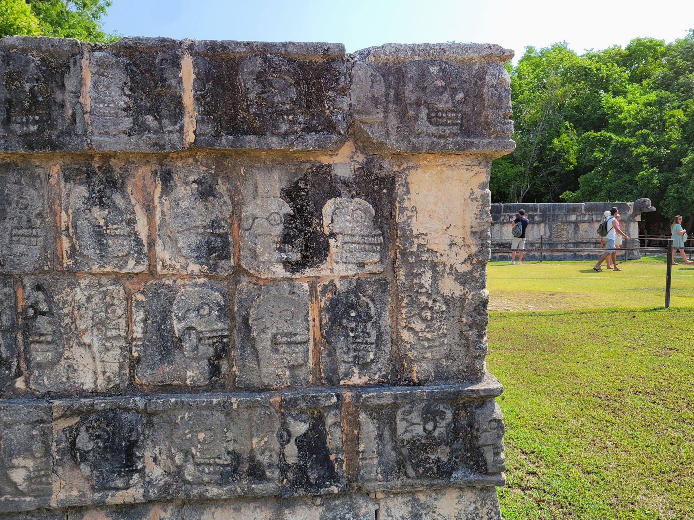 무시무시한 '해골 제단' 촘판틀리(Tzompantli)와 직전에 나오는 '재규어 사원(Jaguar Temple)'의 모습도 아래 동영상에서 확인하실 수 있다. 실제로 이 석벽 위에 잘라낸 사람 머리를 막대기에 줄줄이 끼워서 세워놓았을 것으로 추정된다고 하는데, 돌에 새겨진 해골의 옆모습은 왠지 좀 우스꽝스러워 보이더라는...ㅎㅎ