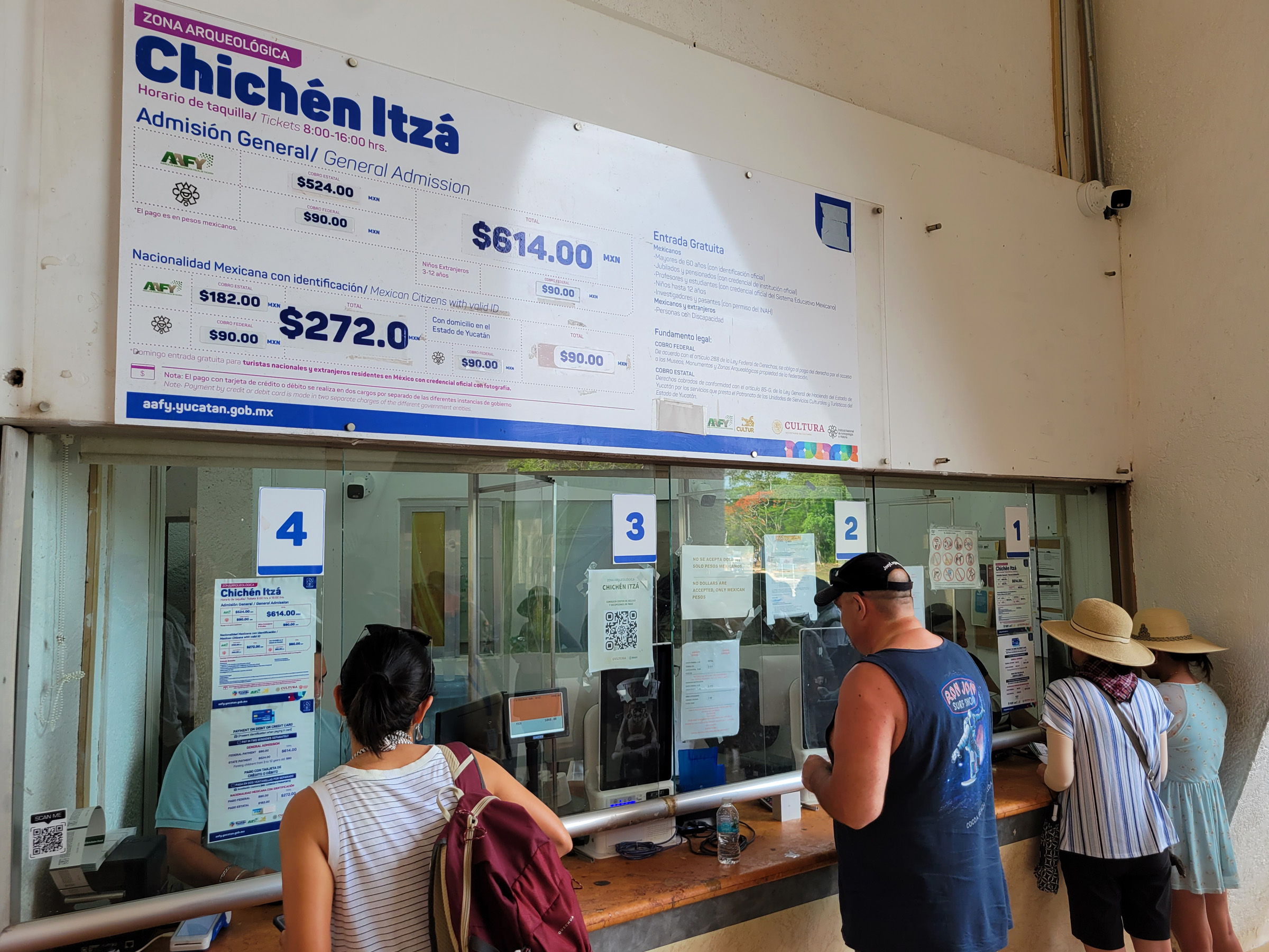 "하기야, 이렇게 비싼 입장료를 내러 온 전세계 많은 사람들에게, 양심상 화장실까지 따로 돈을 받을 수는 없겠지~" 2023년 6월의 입장료는 외국인 614페소, 멕시코 국민 272페소, 그리고 유카탄 주민 90페소로 다르게 책정되어 있었다. 그리고 나뉘어 표시된 주정부와 연방정부에 내는 금액을 따로 계산해야 하고, 그 중 하나는 현금만 가능하다는 글을 봤던 것 같은데, 이 때는 그냥 합계 금액을 한꺼번에 카드로 결재할 수도 있었단다.