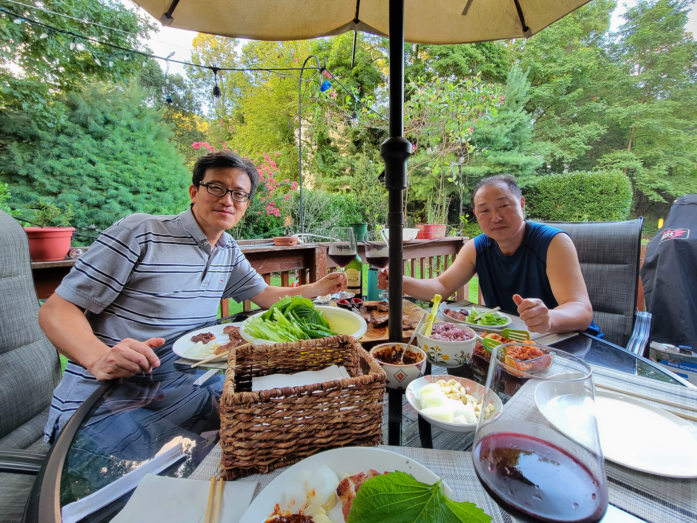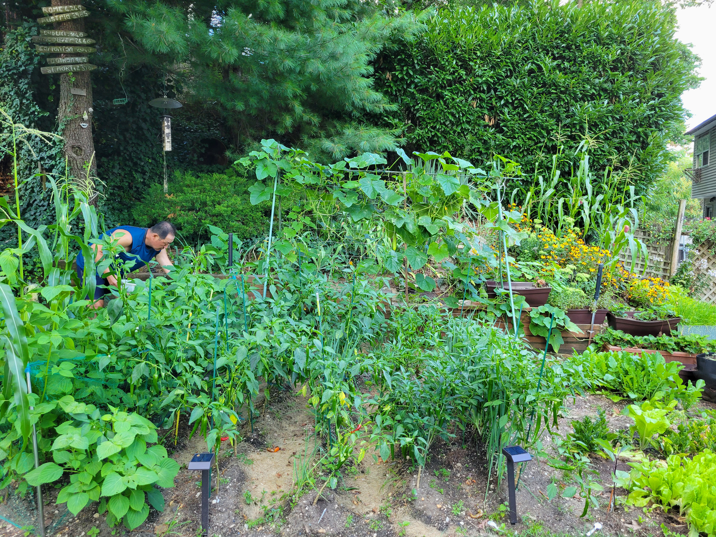 뒷마당의 텃밭에서 따로 많이 챙겨주시려고 깻잎과 고추를 따시는 모습으로, LA에서 우연히 알게 되었던 인연인데, 우리보다 훨씬 먼저 미동부 뉴욕으로 이사를 오셨더랬다.