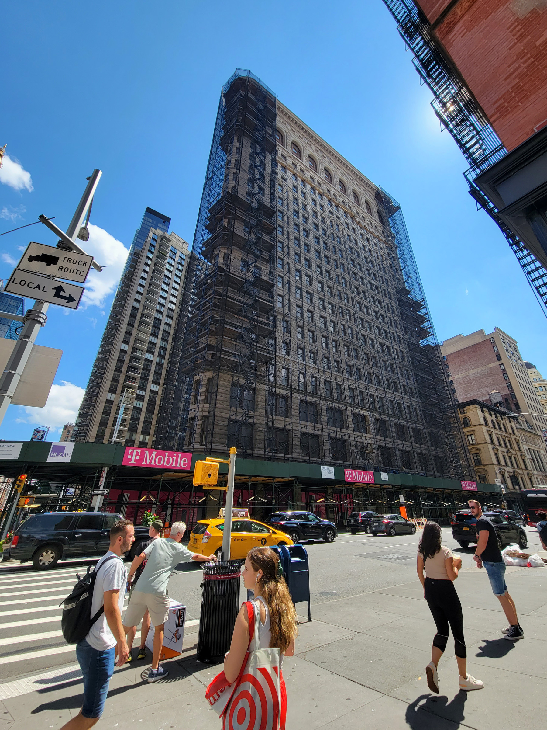 거기서 방향을 틀어 동쪽으로 5번가(5th Ave)까지 걸어와서 직접 보고싶었던 '납작다리미' 플랫아이언 빌딩(Flatiron Building)을 만났다. 브로드웨이(Broadway)가 비스듬히 교차하는 사다리꼴 부지에 뾰족한 삼각형 단면으로 만들어진 높이 87m의 22층 건물은 무려 120여년 전인 1902년에 사무용으로 만들어졌다! 플랫아이언 빌딩은 뉴욕을 넘어 미국 전체에서도 가장 사랑받는 역사유적 건물들 중의 하나로, 올해 경매를 통해서 161백만불에 최종 낙찰되어서 현재 전체를 주거용으로 변경하는 리모델링이 진행중이다.